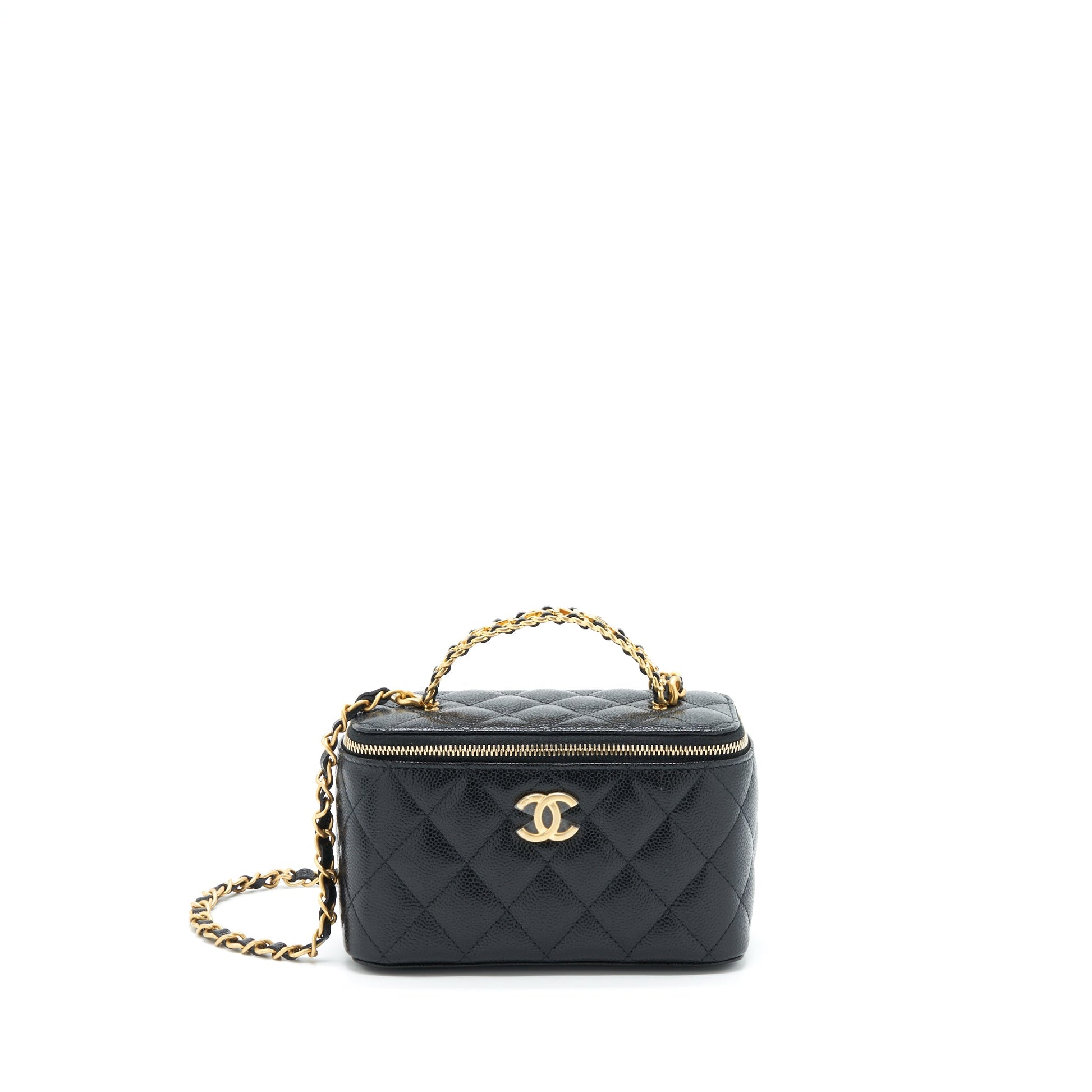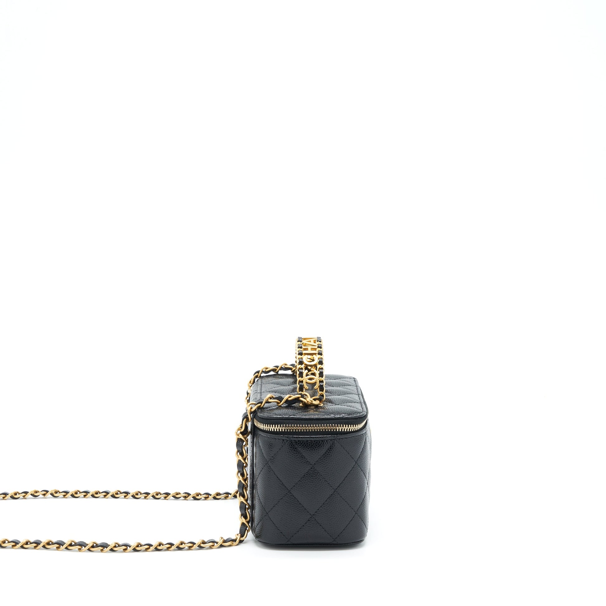 Chanel 22S Letter Top Handle Long Vanity With Chain Caviar Black GHW