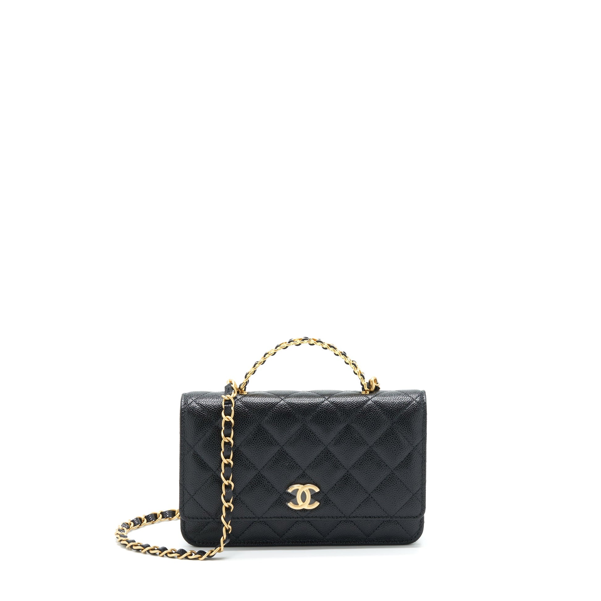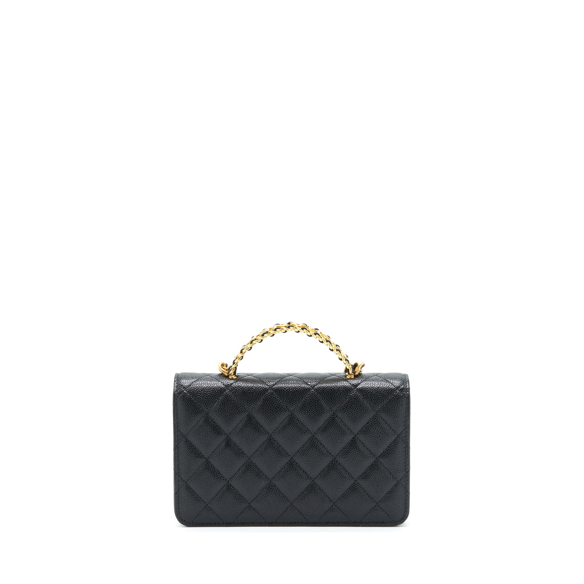 Chanel 22S Logo Top Handle Wallet On Chain Caviar Black GHW (Microchip)