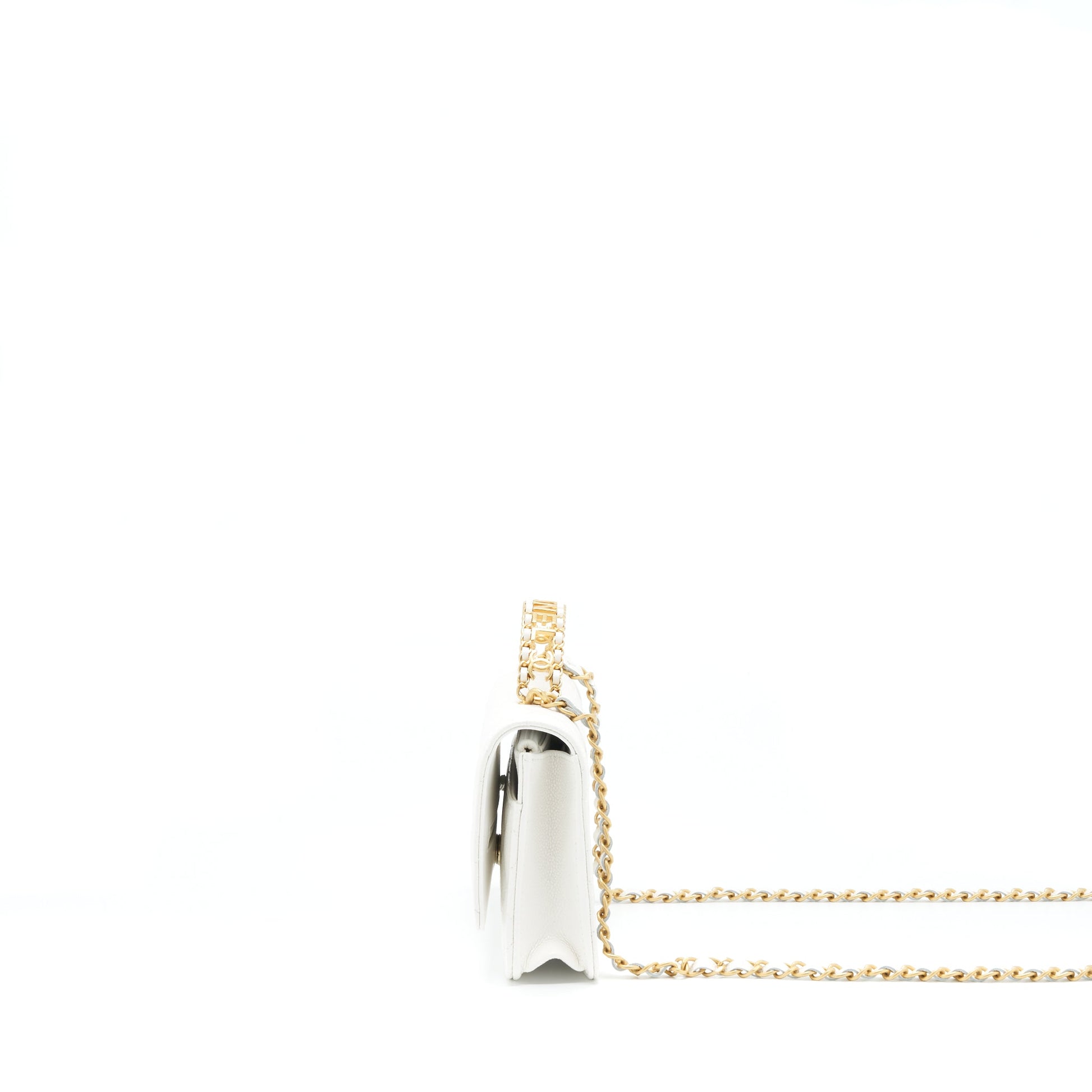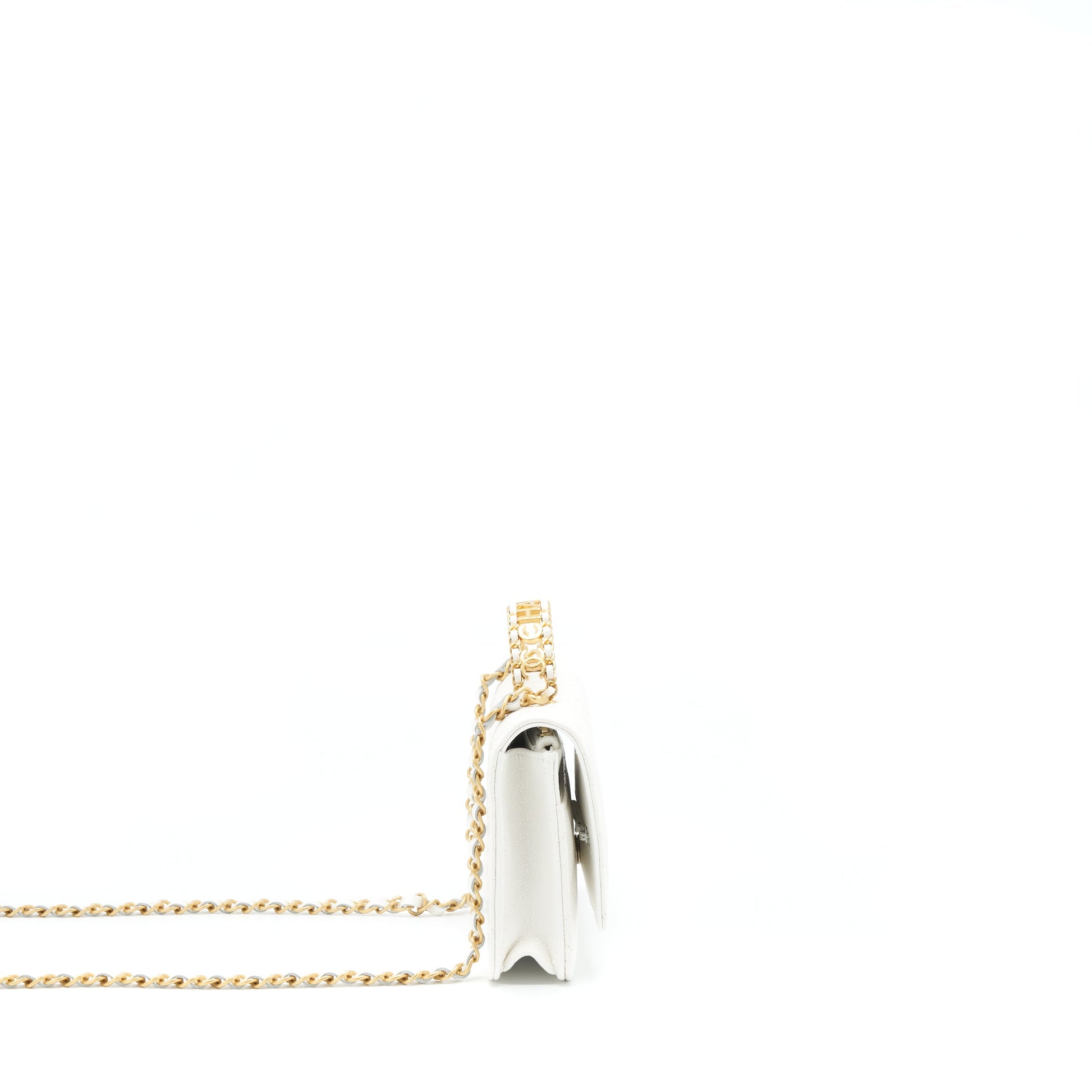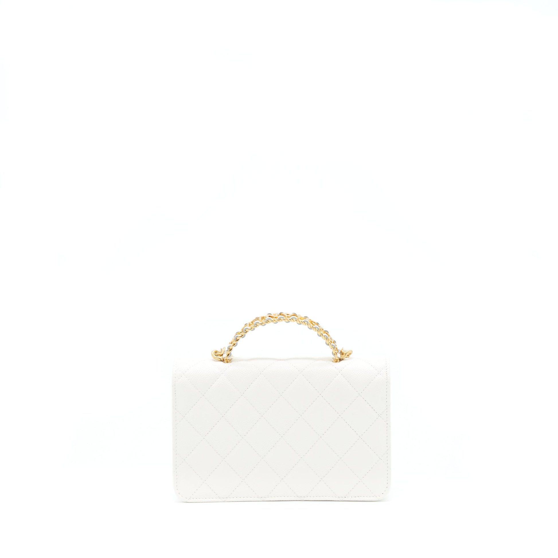 Chanel 22s Logo Top Handle Wallet On Chain Caviar White GHW