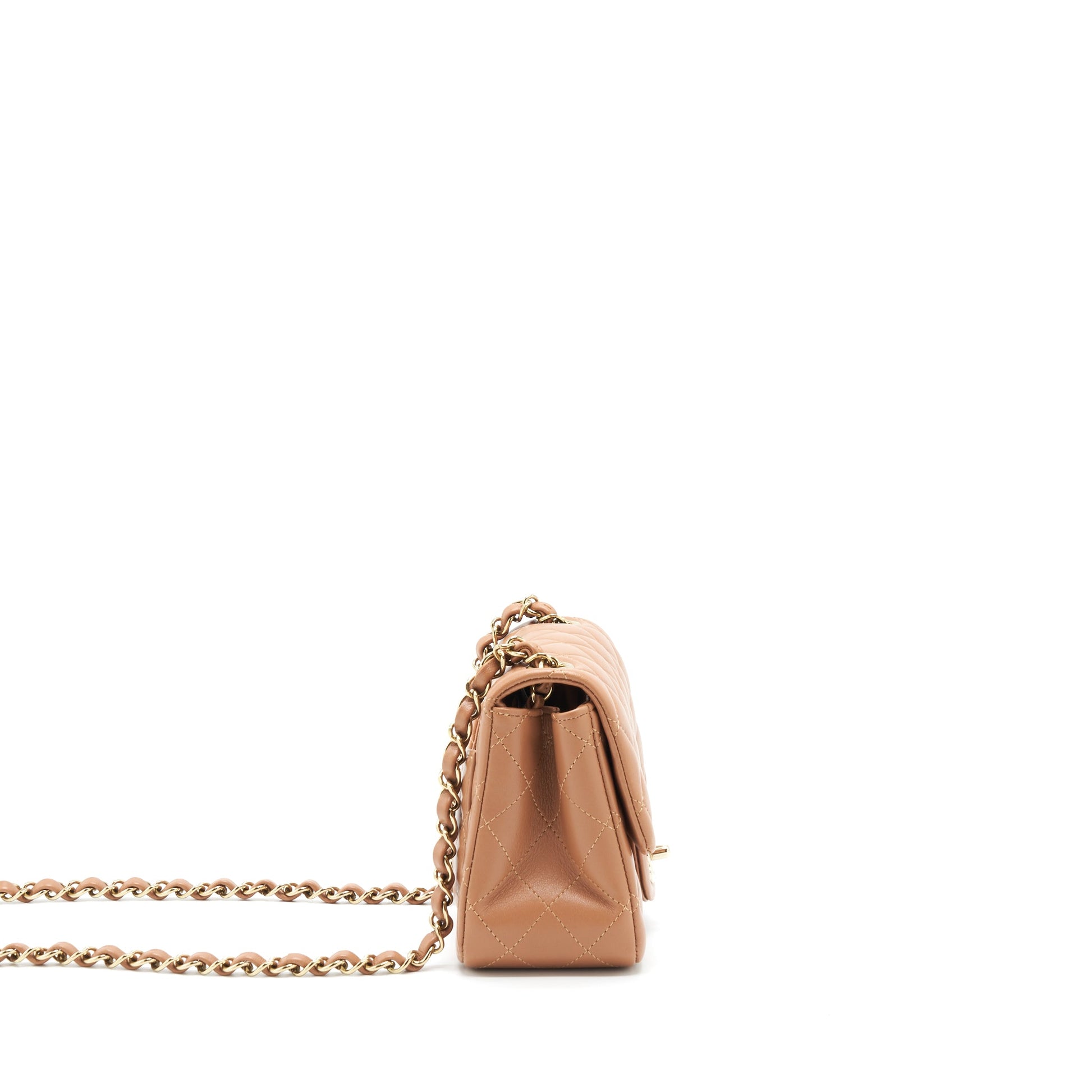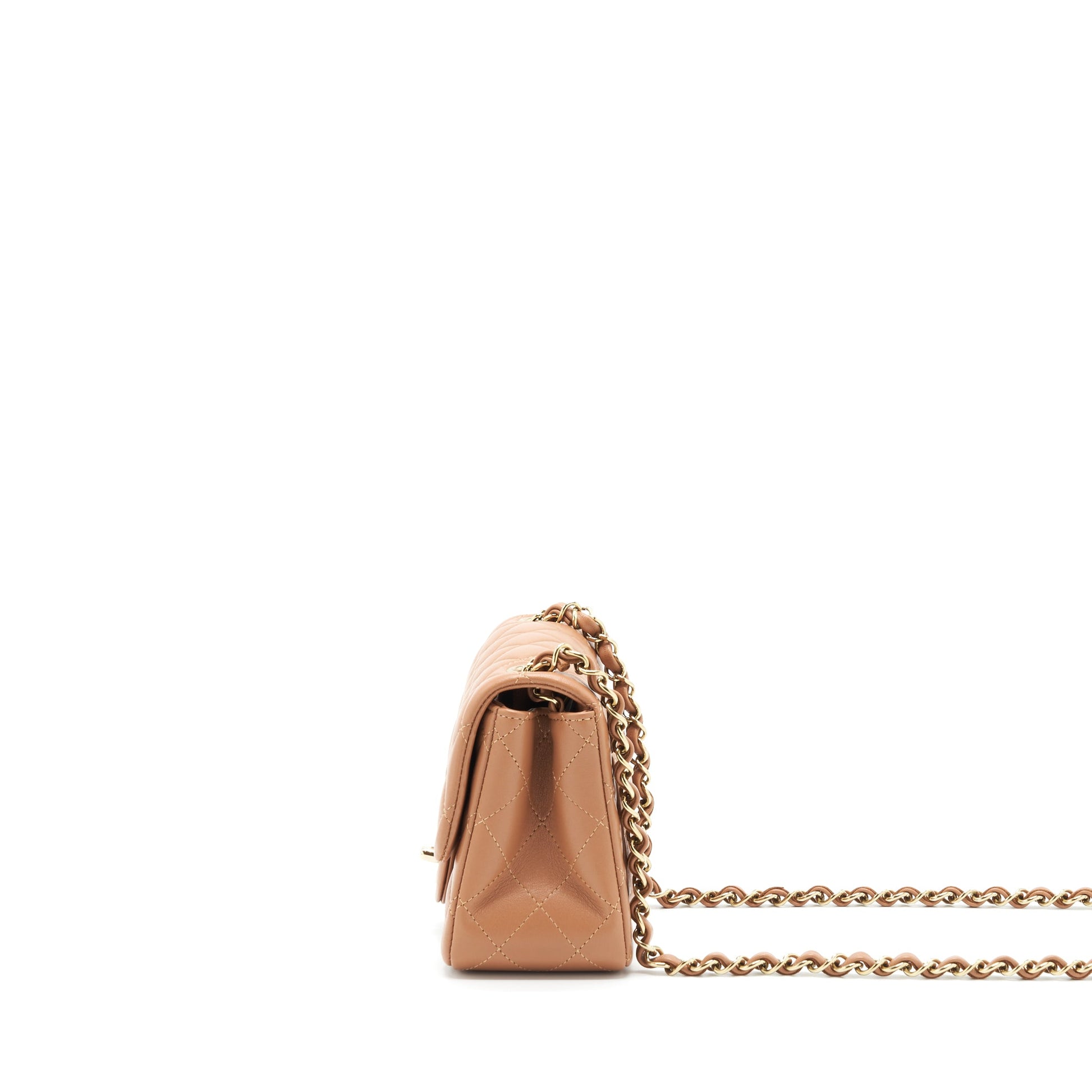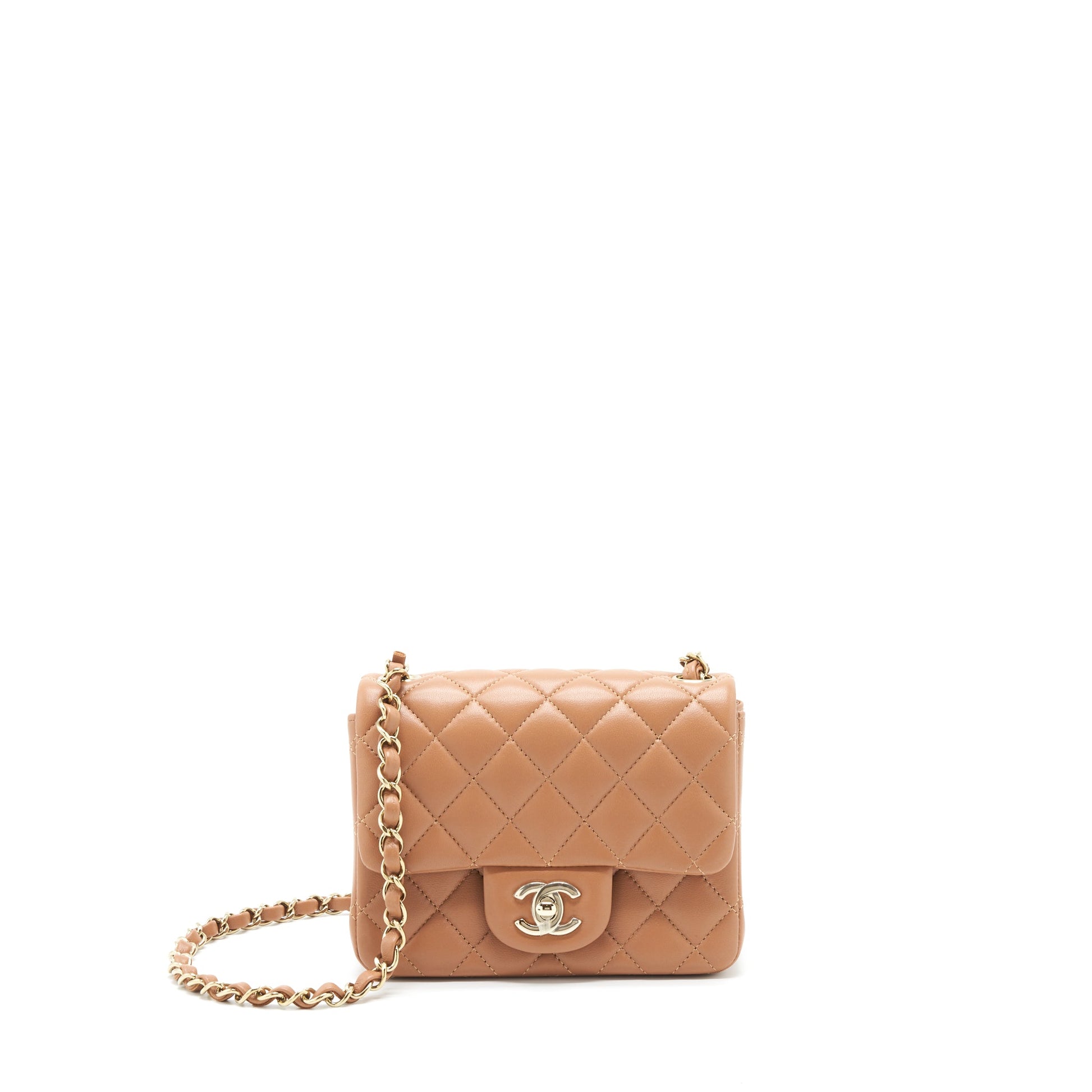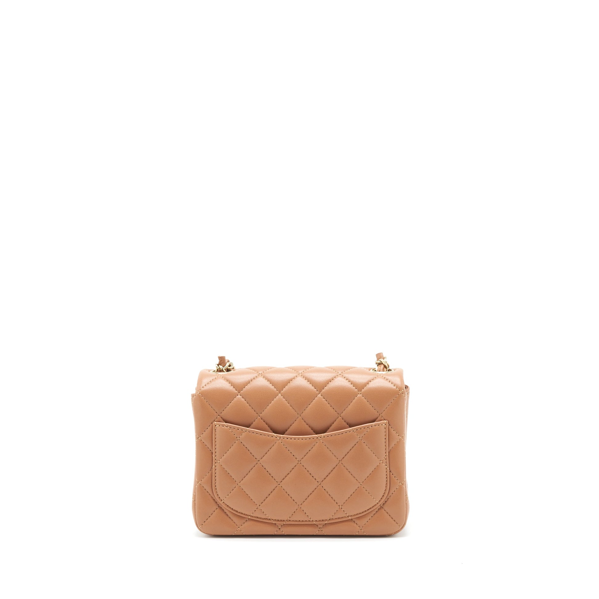 Chanel 22S Mini Square Flap Bag Lambskin Caramel LGHW (Microchip)