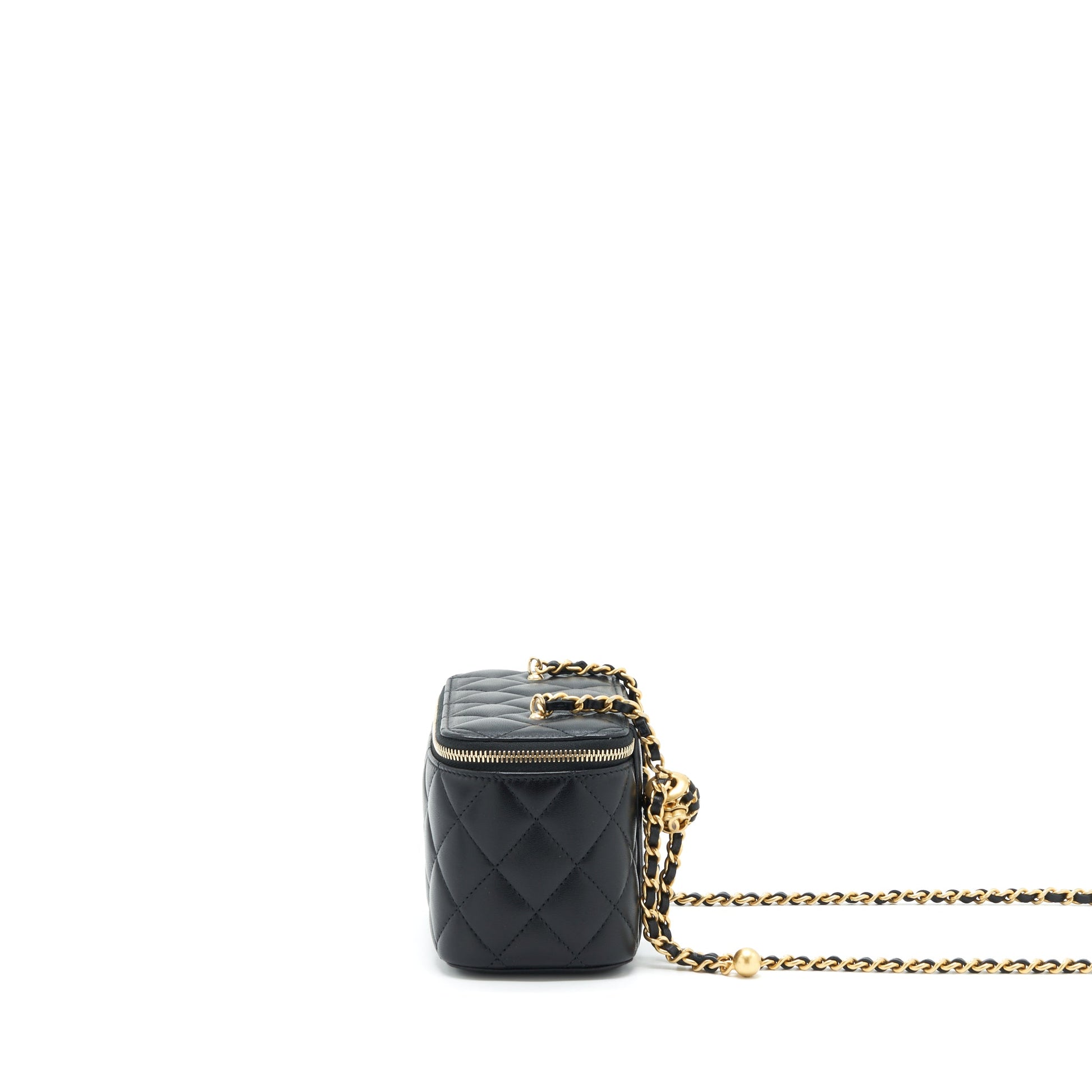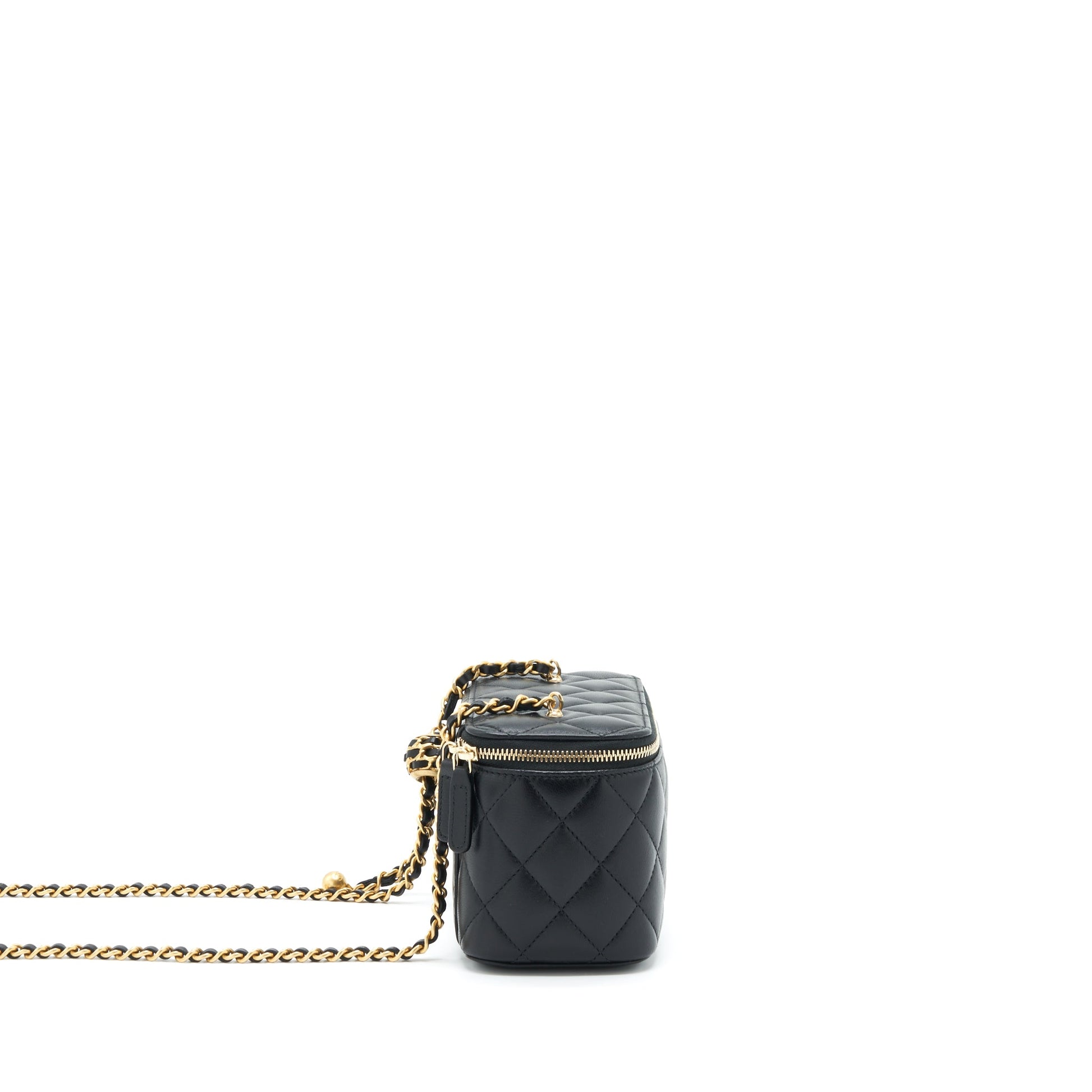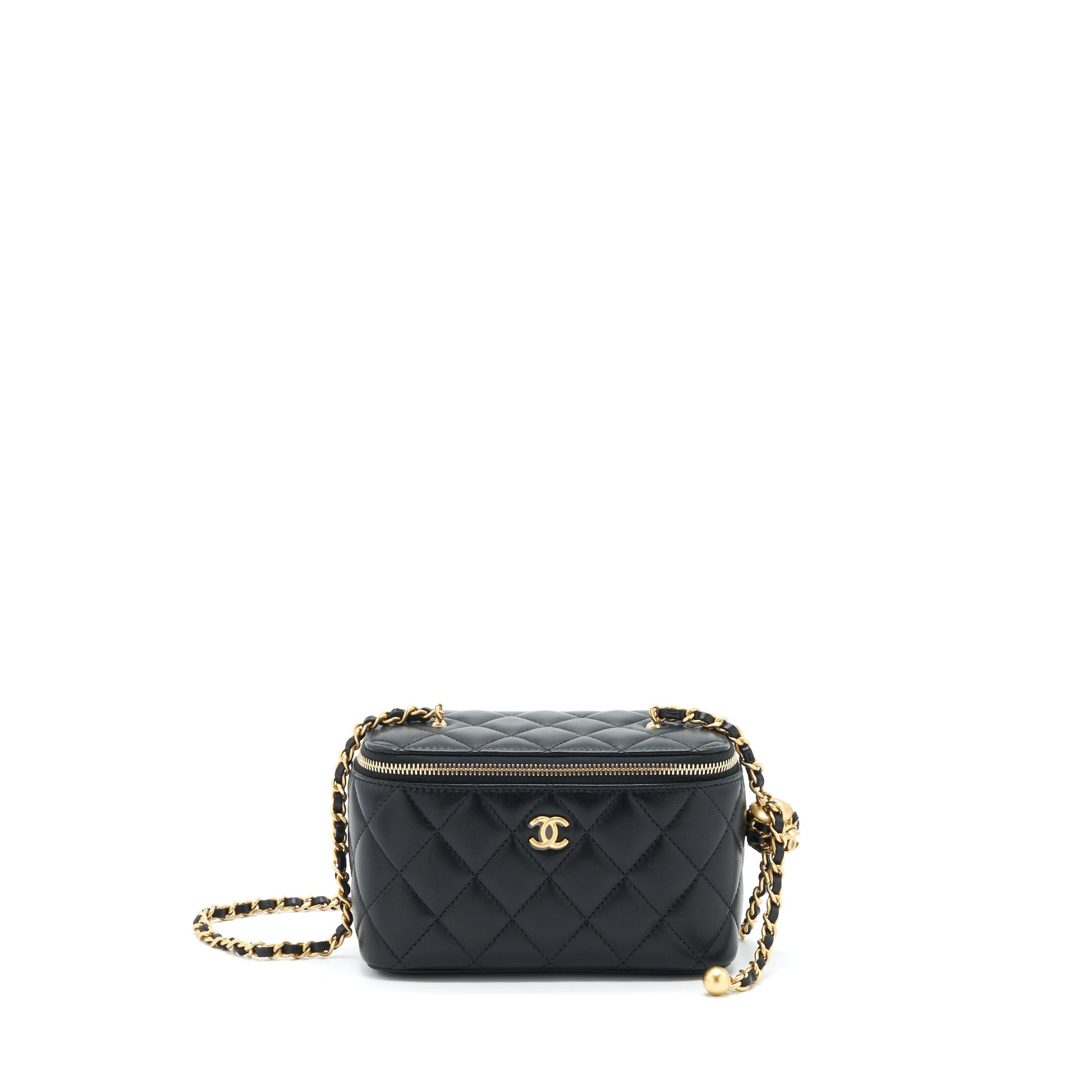 Chanel 22S Pearl Crush Long Vanity With Chain Lambskin Black GHW