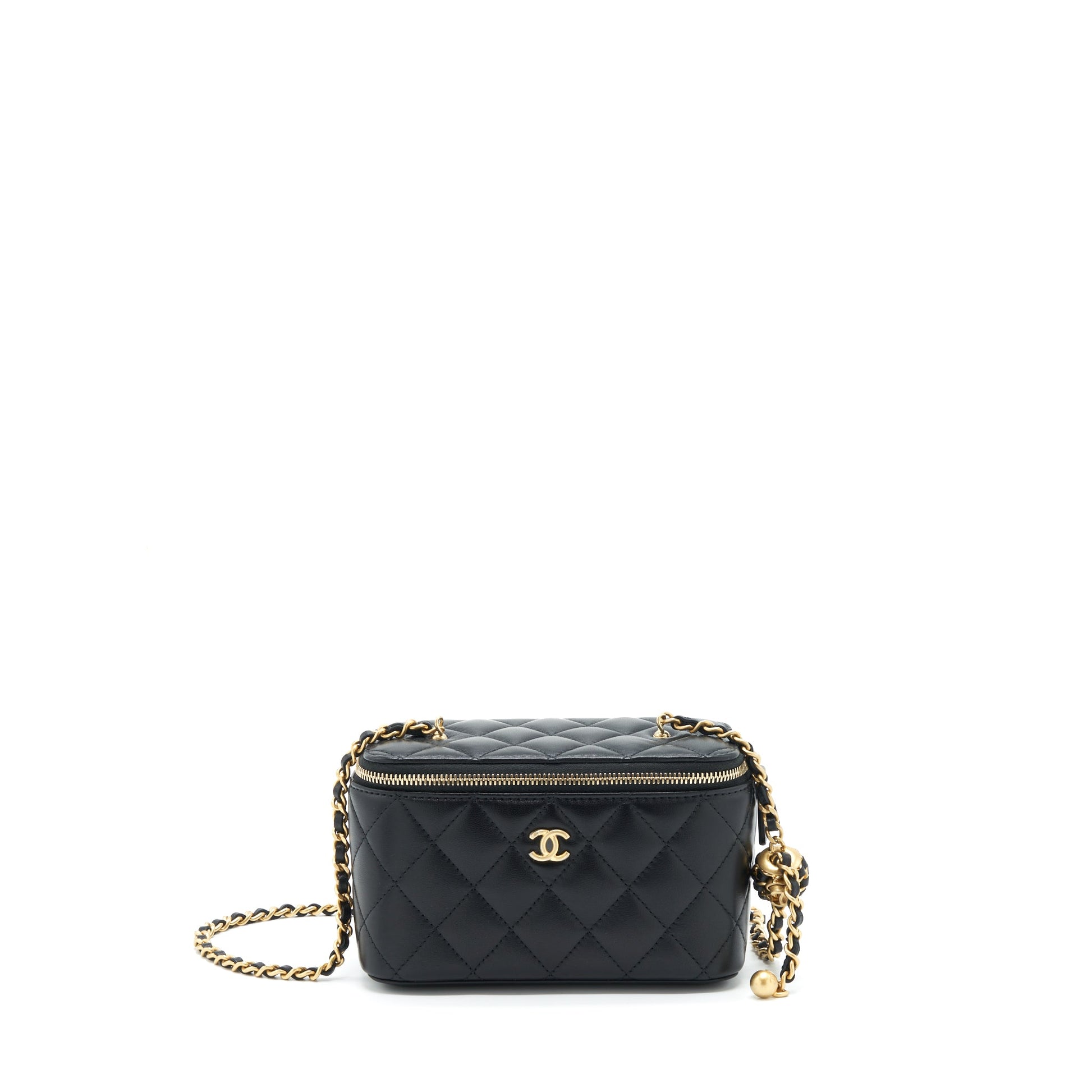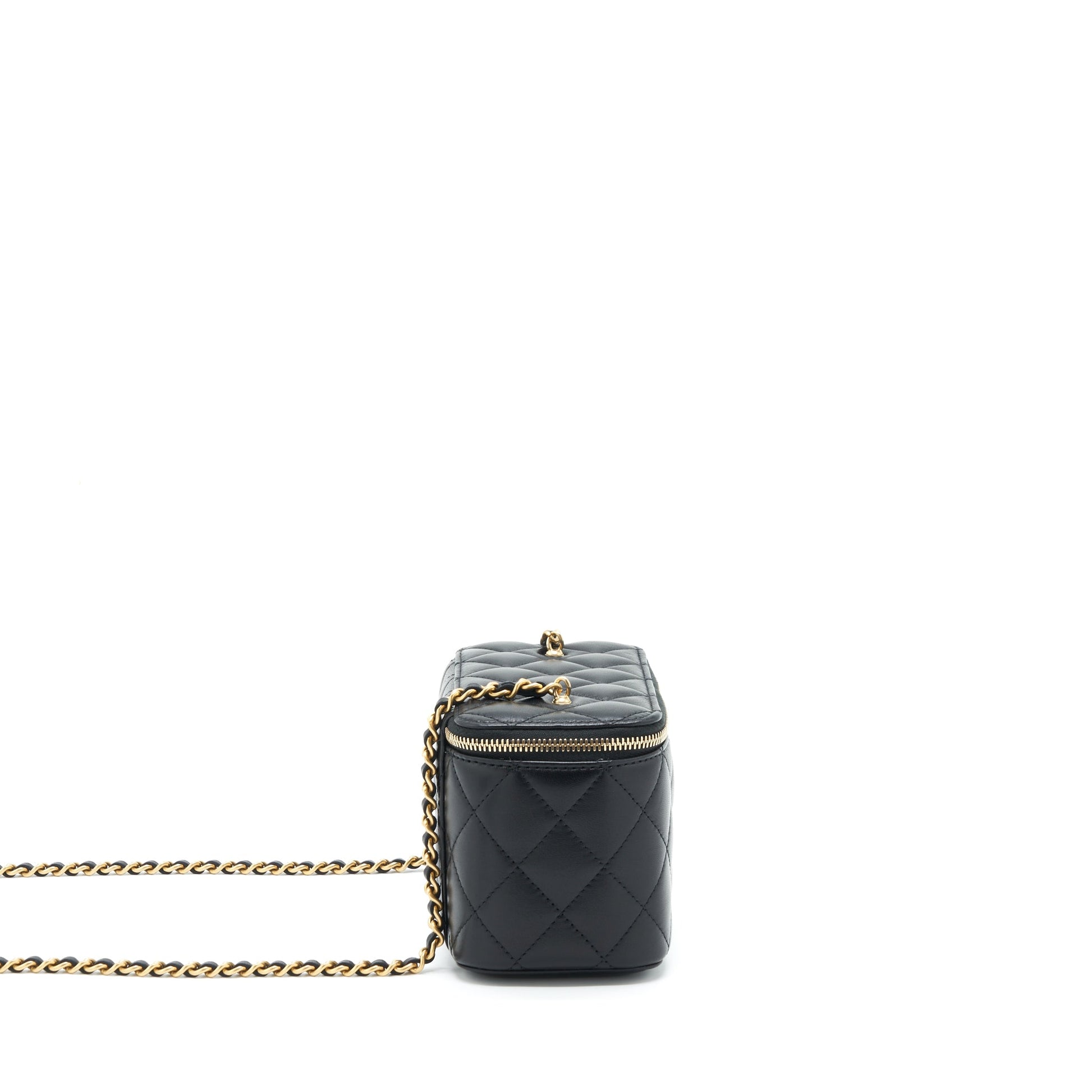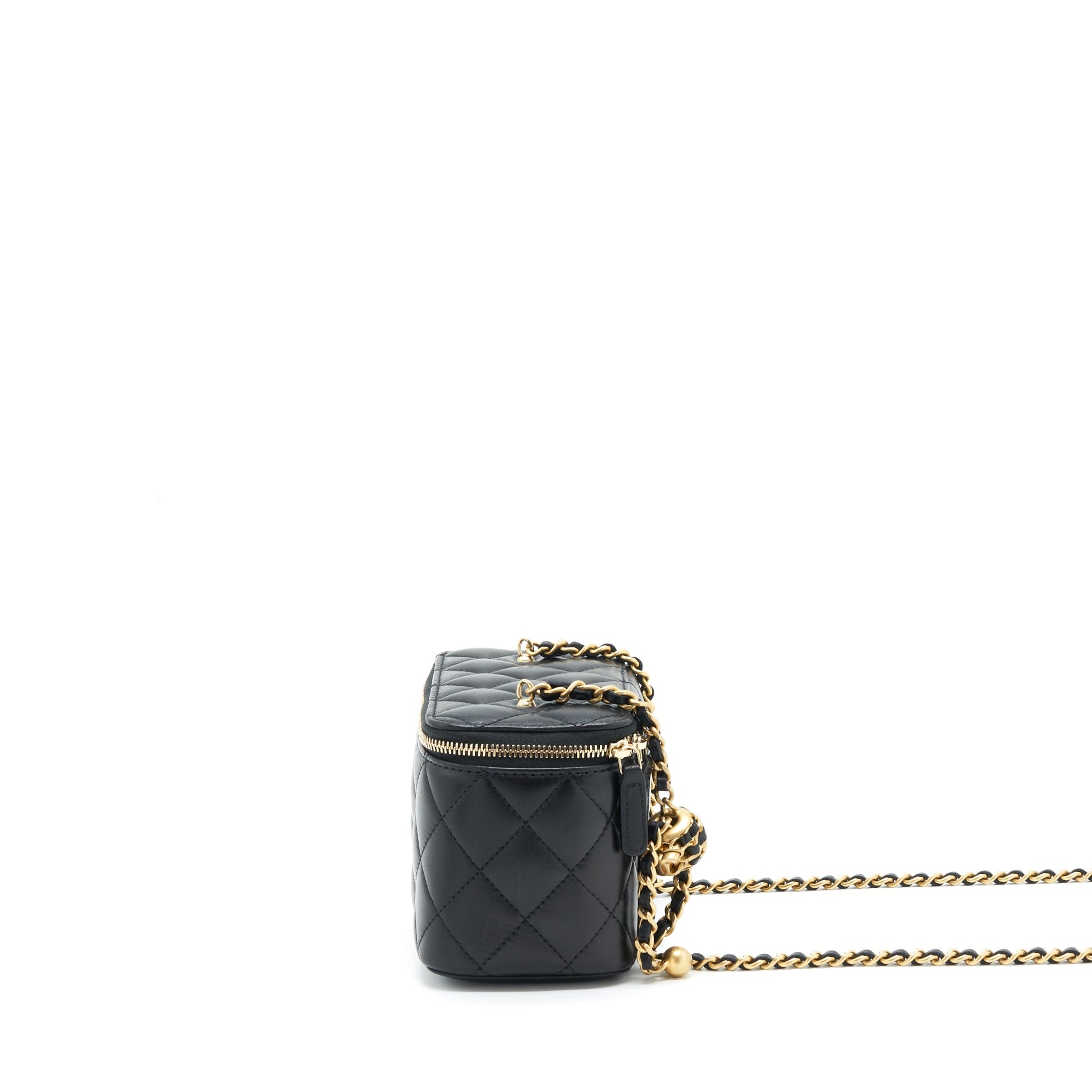 Chanel 22S Pearl Crush Long Vanity With Chain Lambskin Black GHW