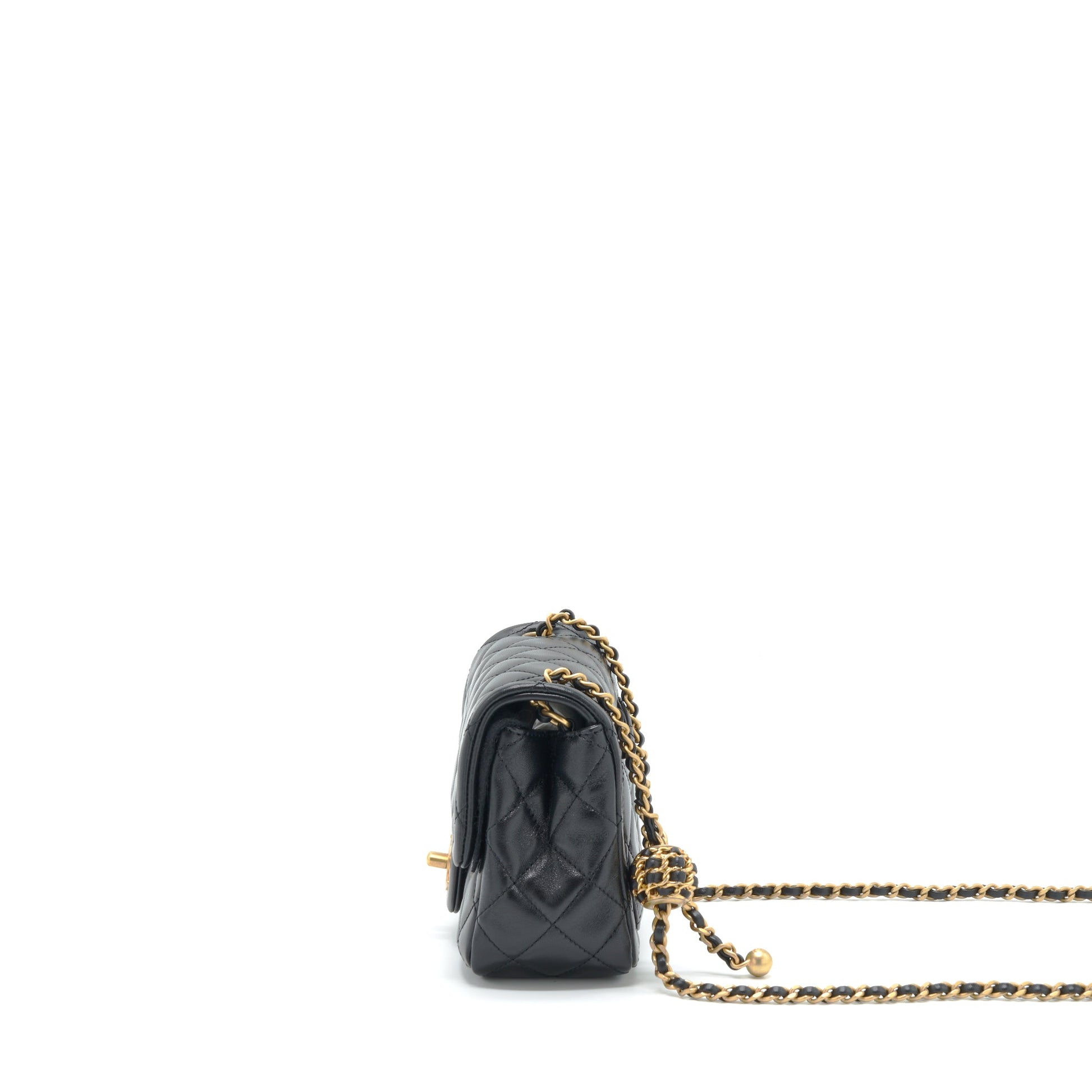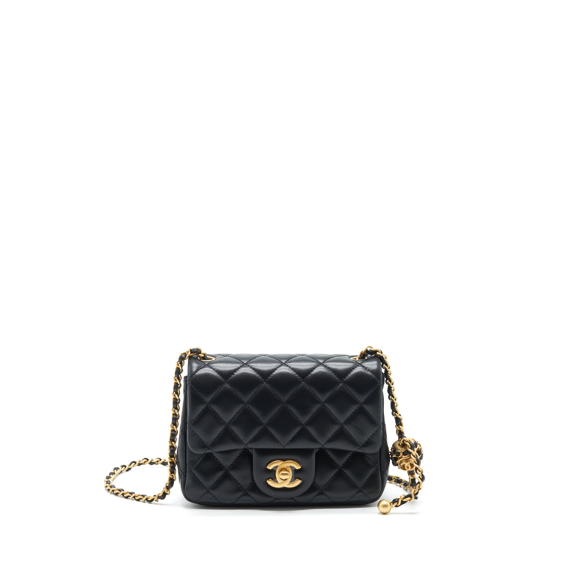 Chanel 22S Pearl Crush Mini Square Flap Bag Lambskin Black GHW (Microchip)