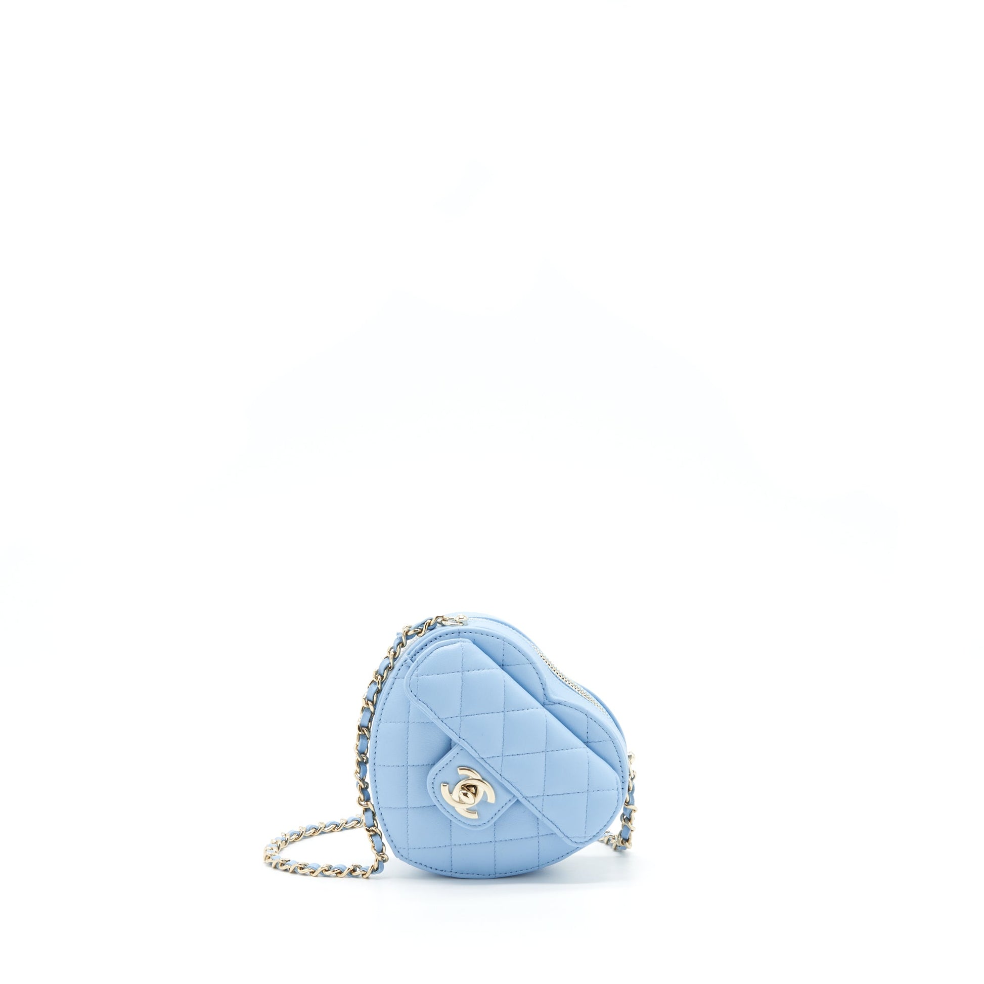 Chanel 22S Small Heart Bag Lambskin Light Blue LGHW