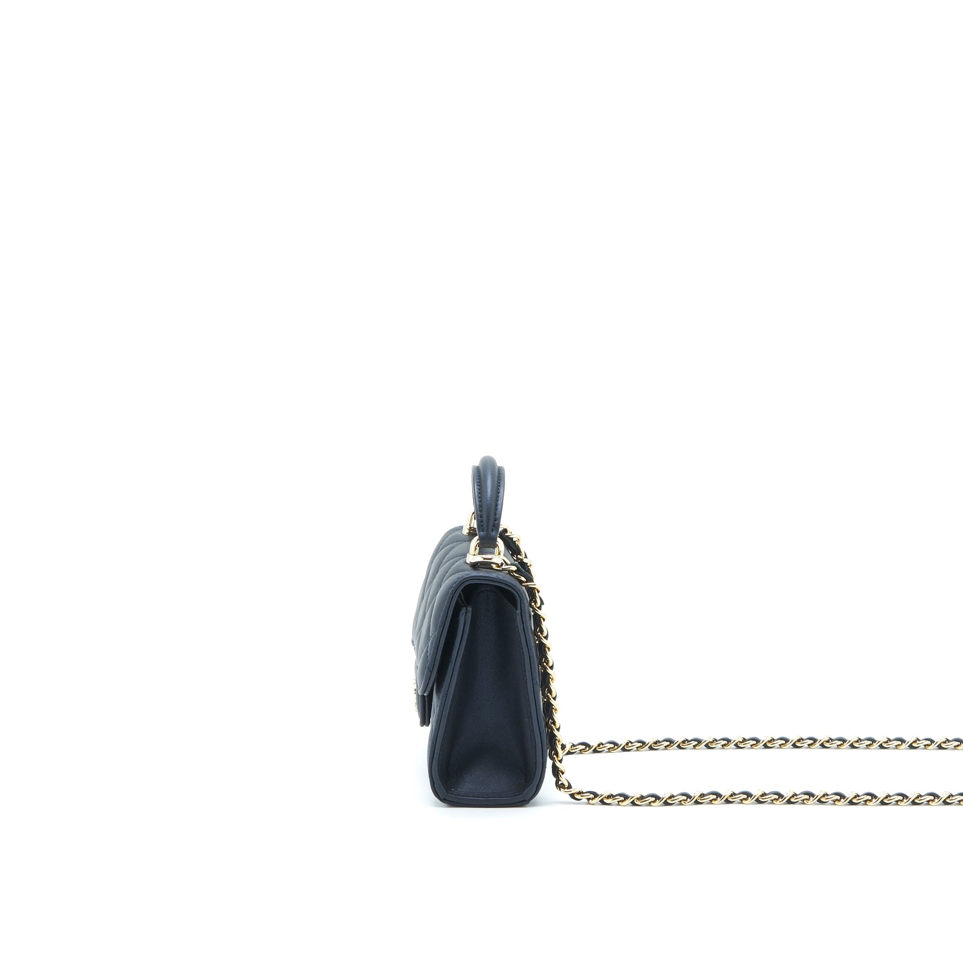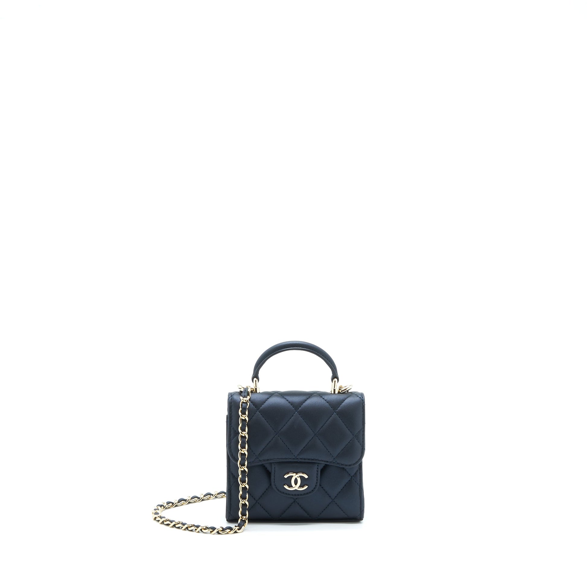 Chanel 22S Top Handle Mini Flap Bag With Chain Lambskin Navy LGHW