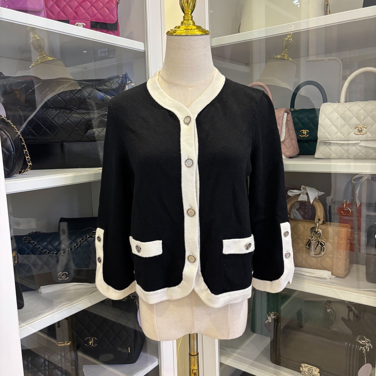 Chanel 25C Cardigan With CC Logo Buttons in Black / White mere Sz 38