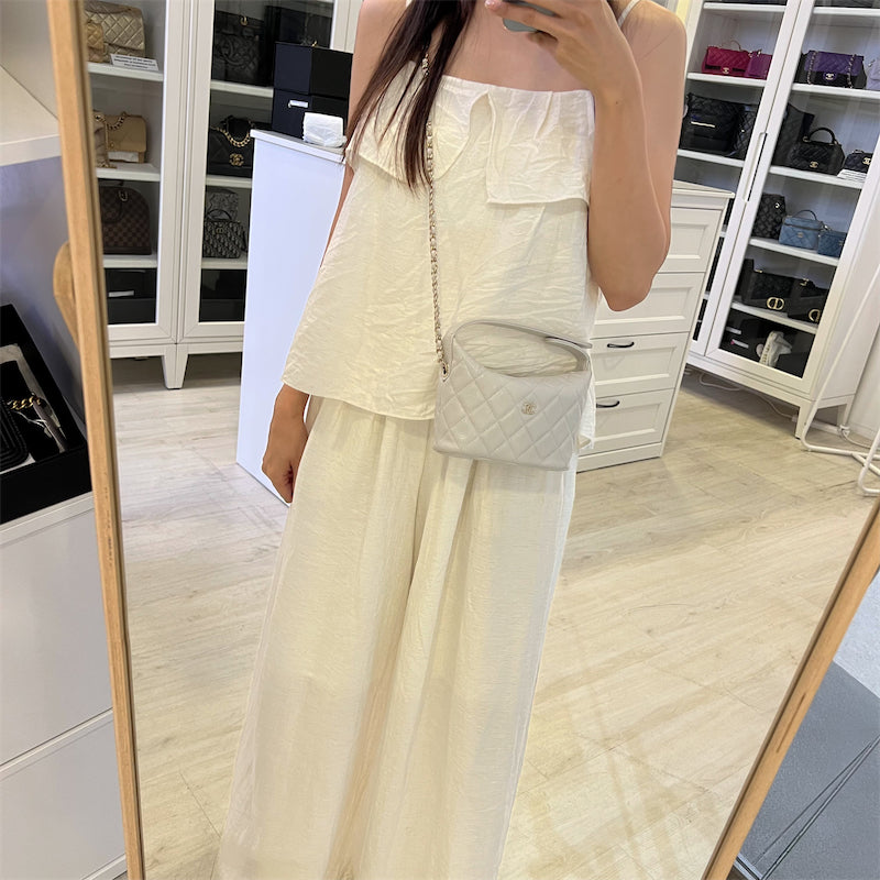 Chanel 25C Quilted Hobo Clutch on Chain in Light Grey Caviar and LGHW