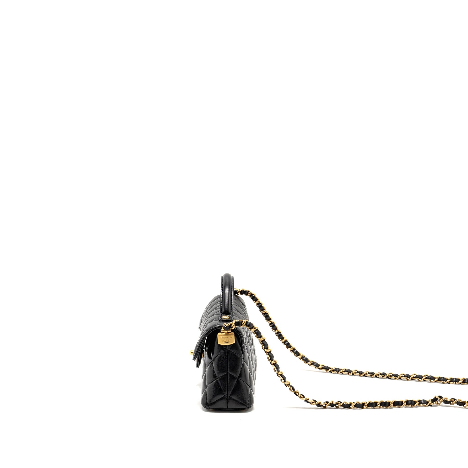 Chanel 25p Top Handle Flap Bag Shiny Lambskin Black GHW(microchip)