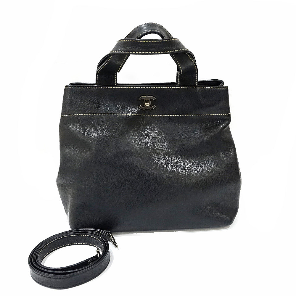 Chanel 2WAY Handbag Black Caviar S Silver G CocoMark