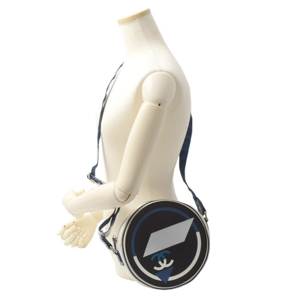 Chanel Airline Round Shoulder Bag Rubber Canvas Navy Black White