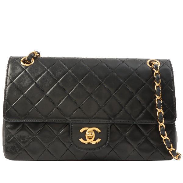 Chanel Around 1985-1990 Made Straight Flap Turn-Lock Chain Bag Black