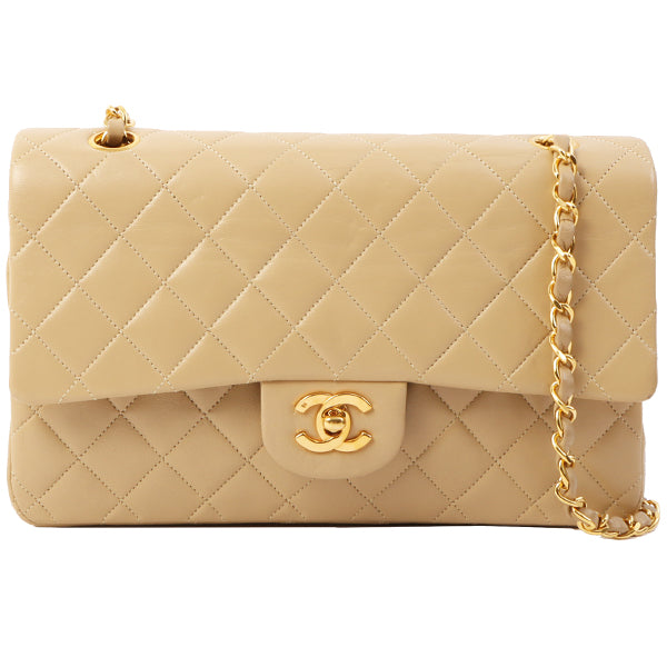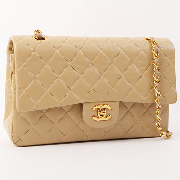 Chanel Around 1990 Made Classic Flap Chain Bag 25Cm Beige