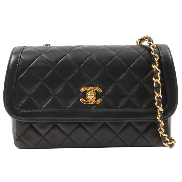Chanel Around 1990 Made Design Flap Turn-Lock Chain Bag With Pouch Black