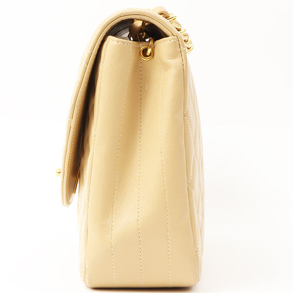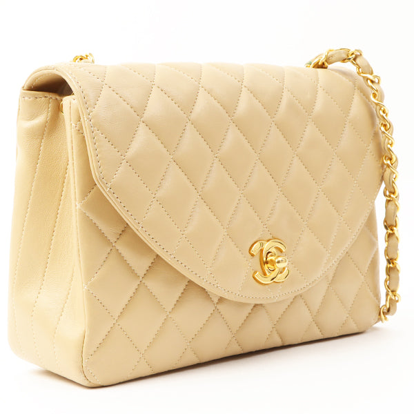 Chanel Around 1990 Made Round Flap Turn-Lock Chain Bag Beige