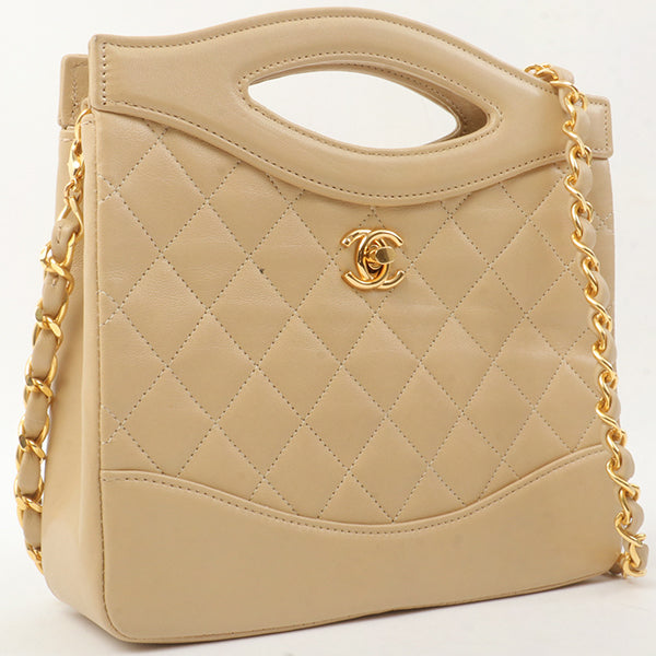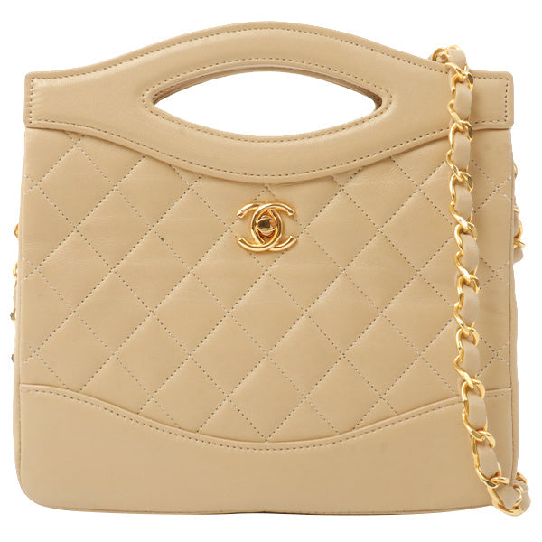 Chanel Around 1990 Made Turn-Lock Mini 2Way Chain Bag Beige