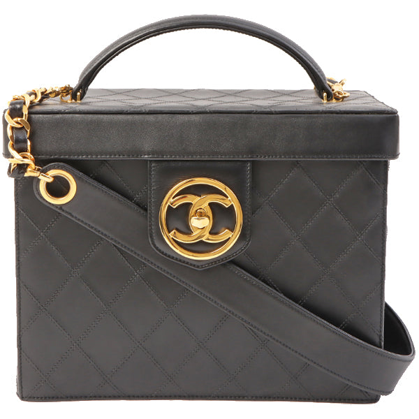 Chanel Around 1992 Made Bicolore Stitch Round Turn-Lock Vanity 2Way Bag Black