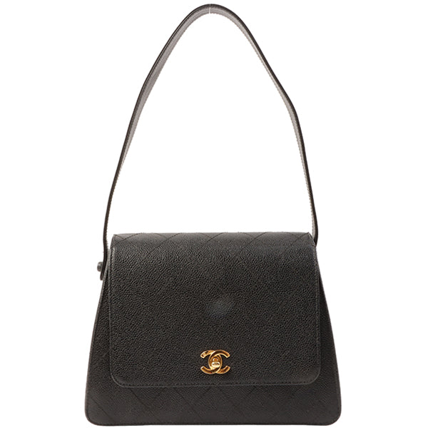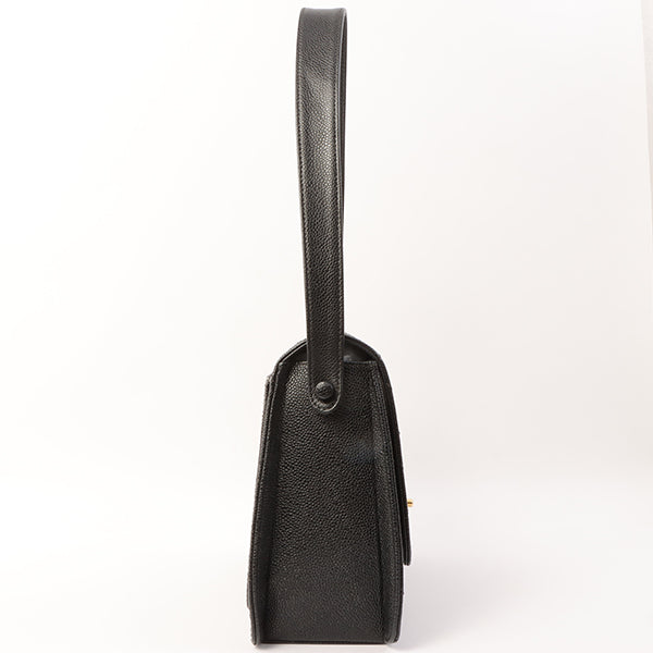 Chanel Around 1997 Made Caviar Skin Turn-Lock Shoulder Bag Black