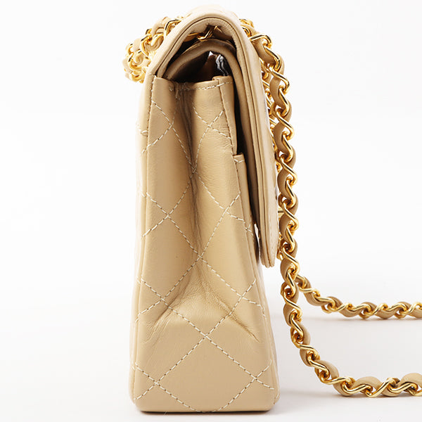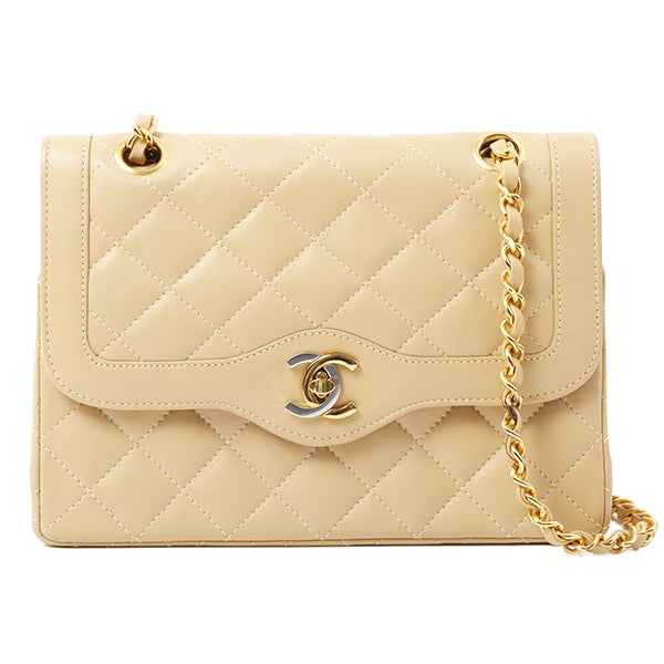 Chanel Around 1997 Made Paris Limited Design Flap Turn-Lock Chain Bag Beige