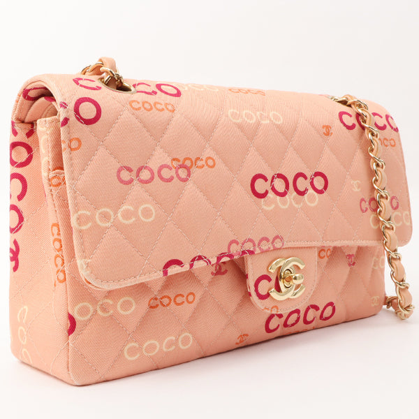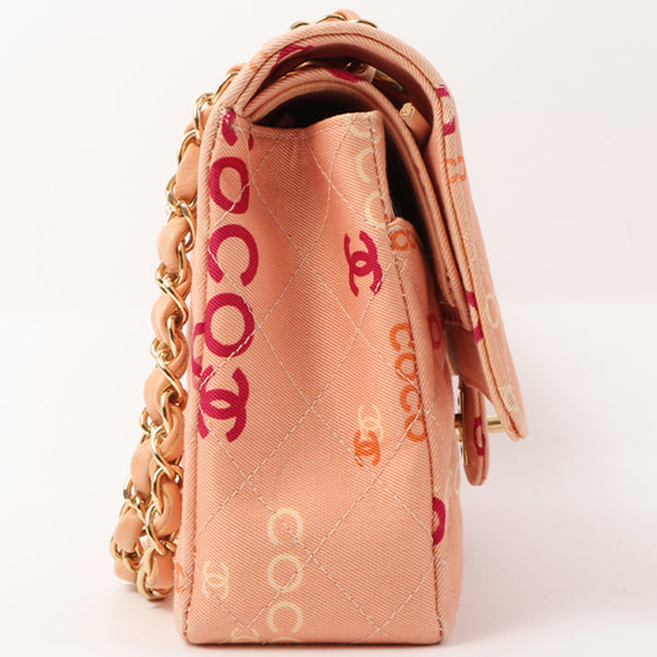 Chanel Around 2001 Made Cotton Logo Print Classic Flap Chain Bag 25Cm Coral Pink