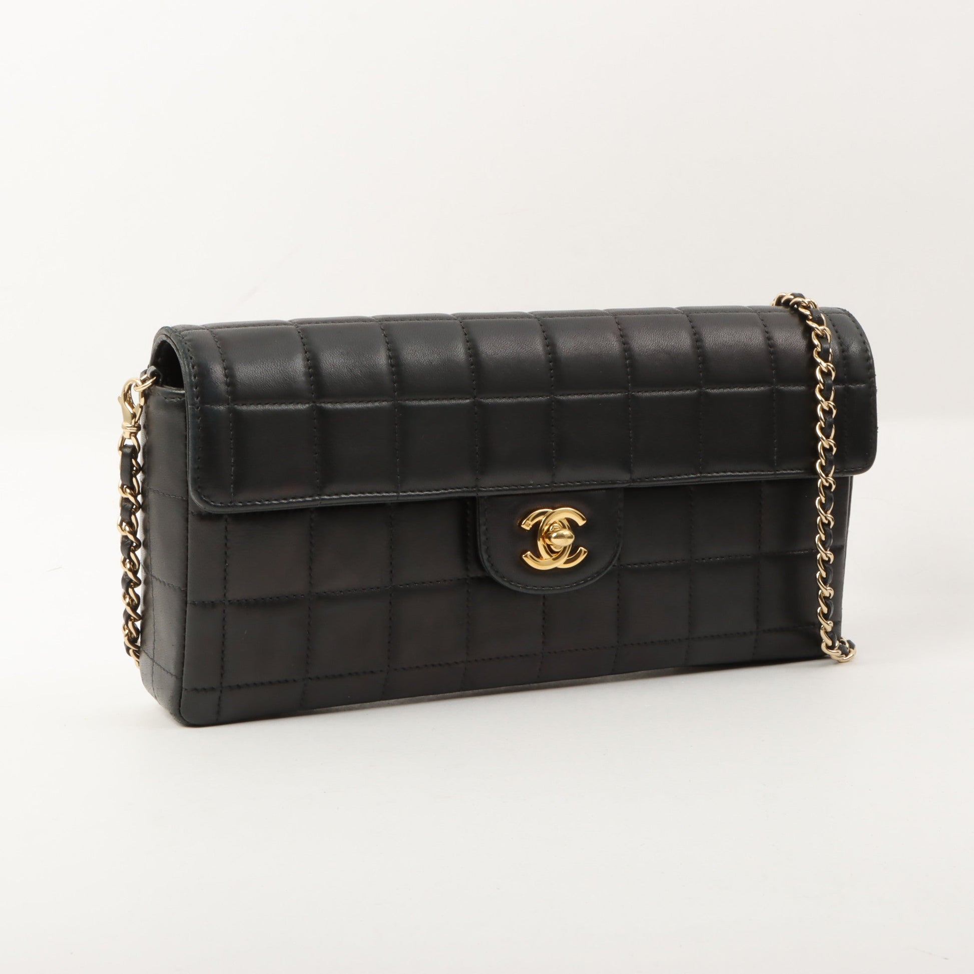 Chanel Around 2002 Made Chocolate Bar Turn-Lock Chain Bag Black