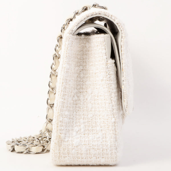 Chanel Around 2003 Made Tweed Classic Flap Chain Bag 25Cm White