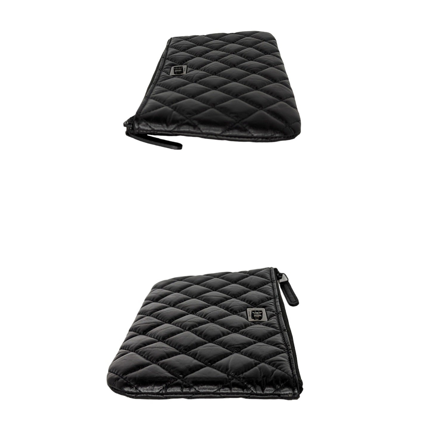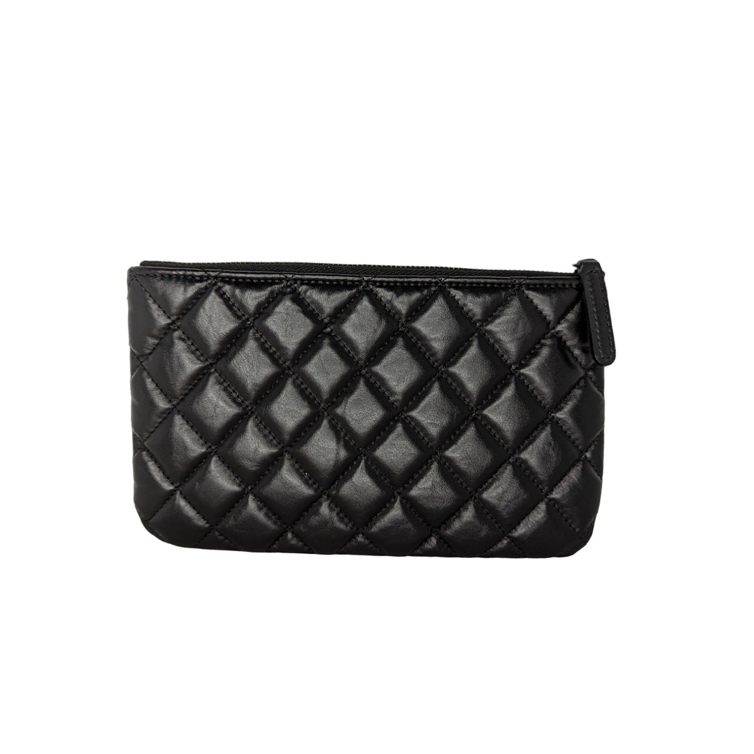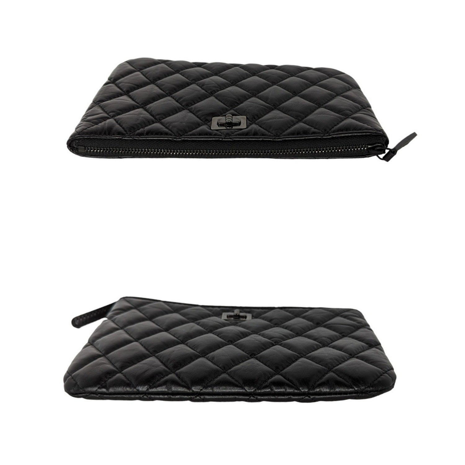 Chanel bag Aged Calfskin Quilted Medium Reissue Cosmetic Case So in Black. This stylish cosmetic pouch is crafted of diamond-quilted leather in black with a small black mademoiselle turn-lock embellishment. The top zipper opens to a black fabric interior with a patch pocket and card slots.