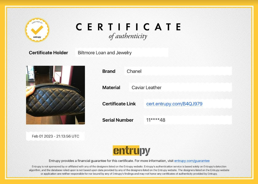Includes: Chanel bag dust bag and Entrupy COA