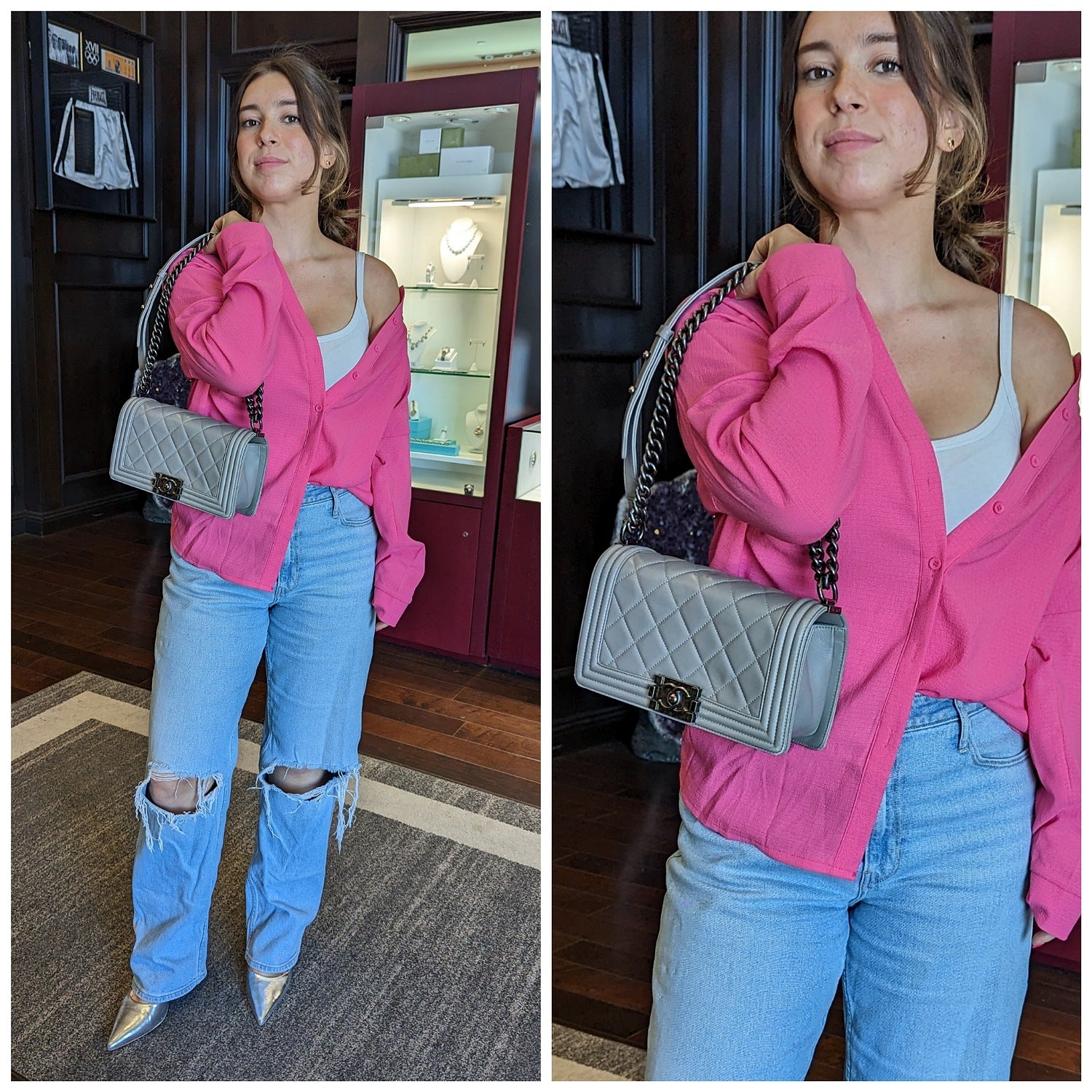 Chanel bag Gray Quilted Calfskin Medium Boy Bag