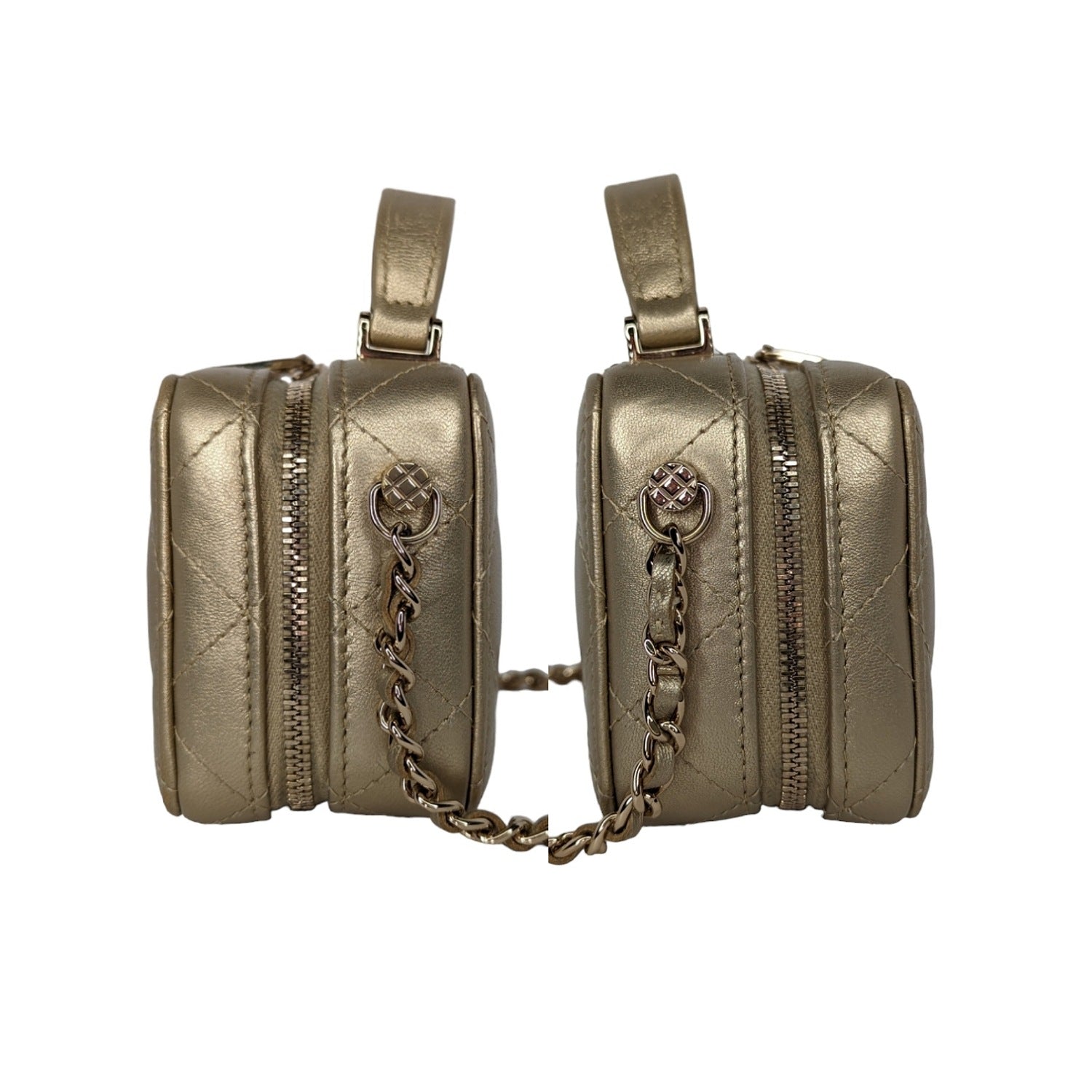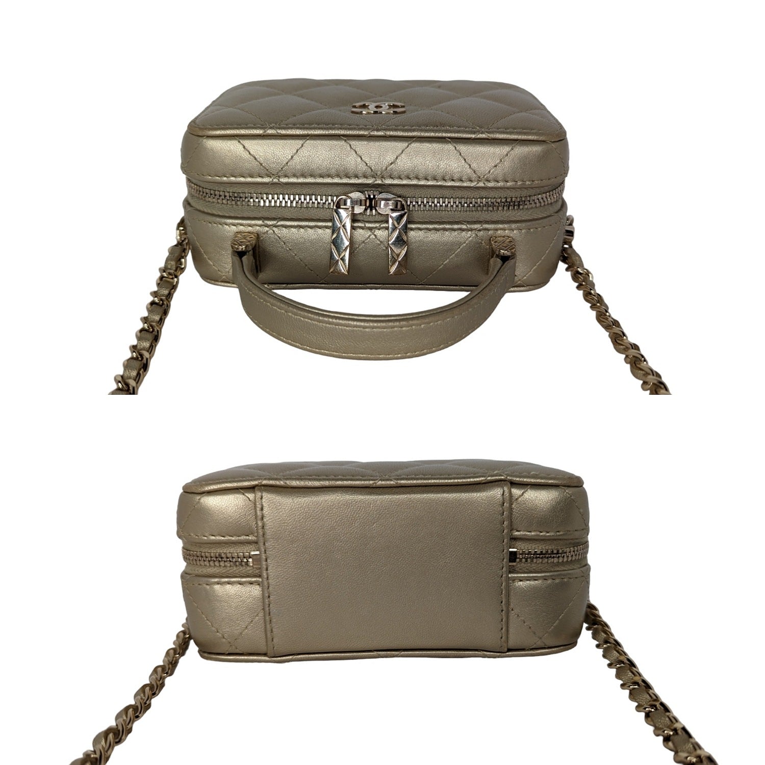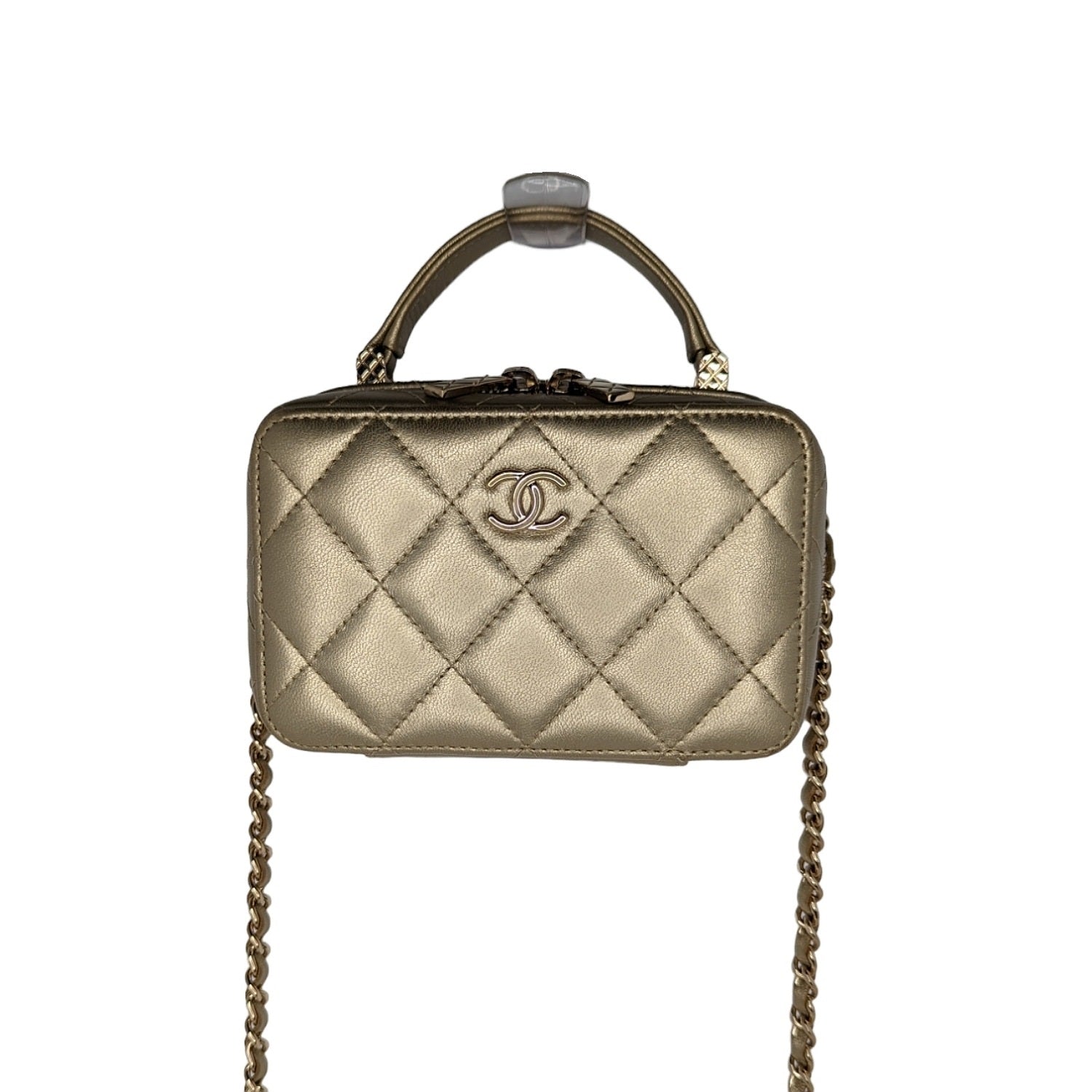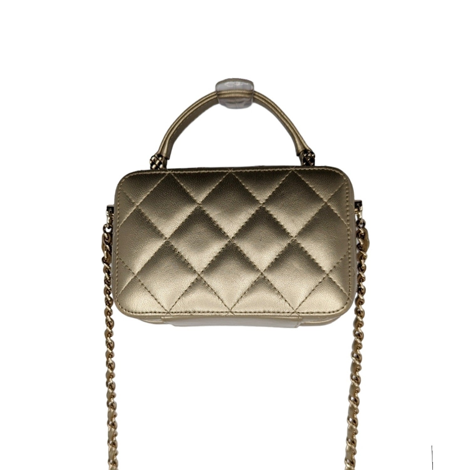 Chanel bag Metallic Lambskin Quilted Top Handle Vanity Case Gold