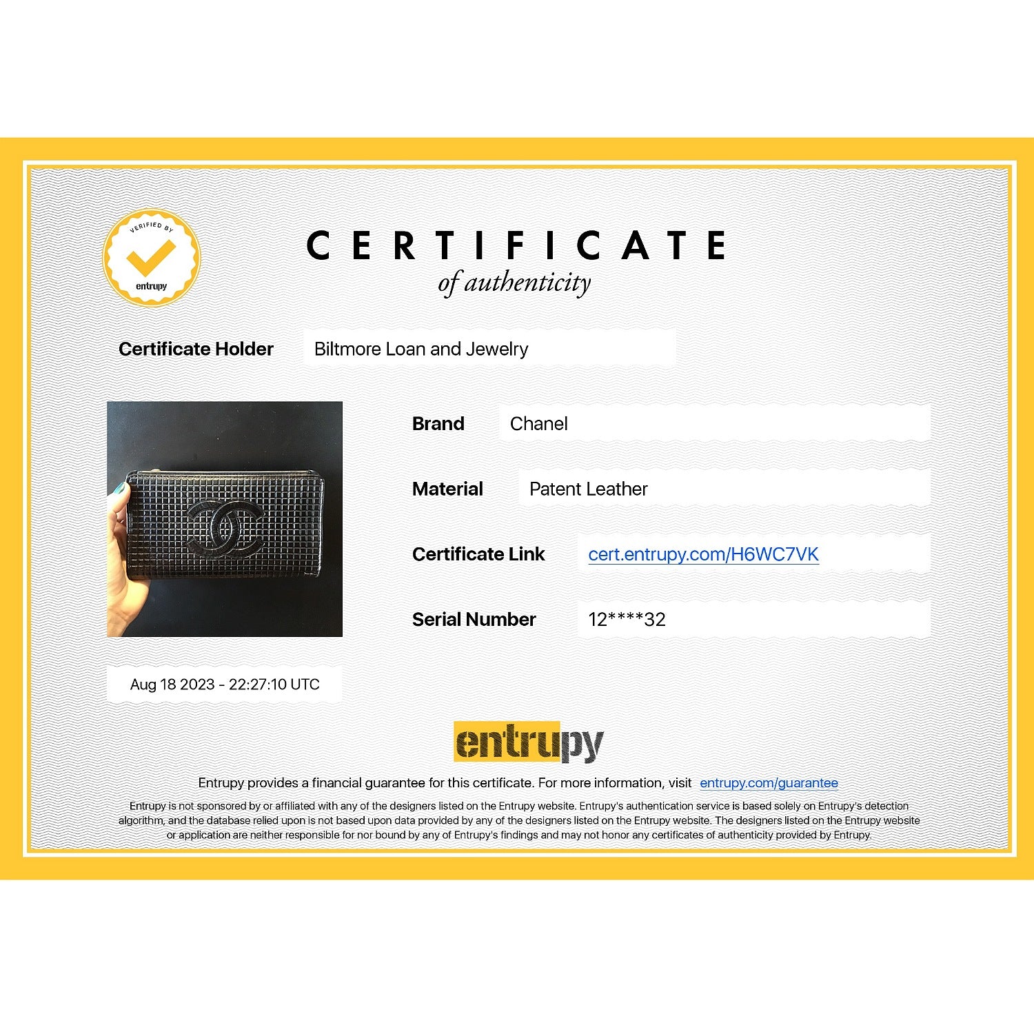 Includes: Original box, care booklet, COA card & Entrupy Certificate