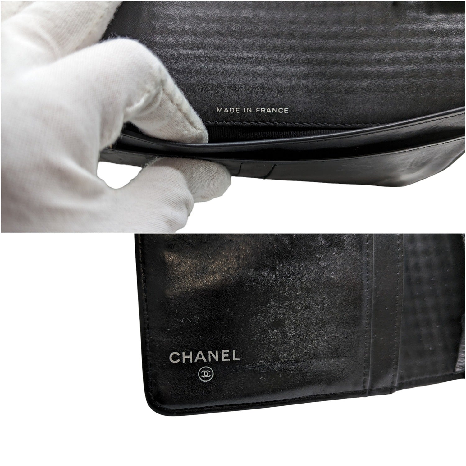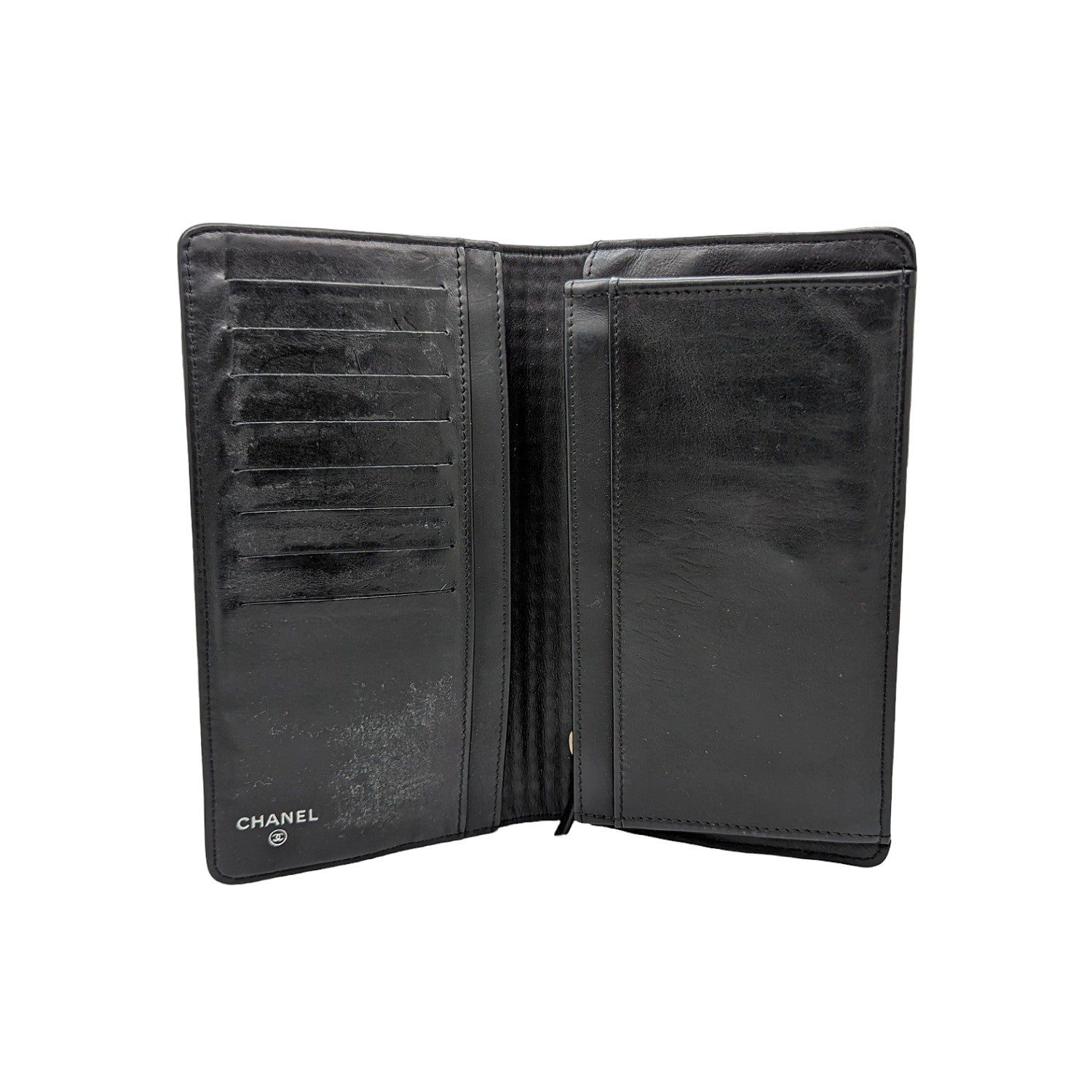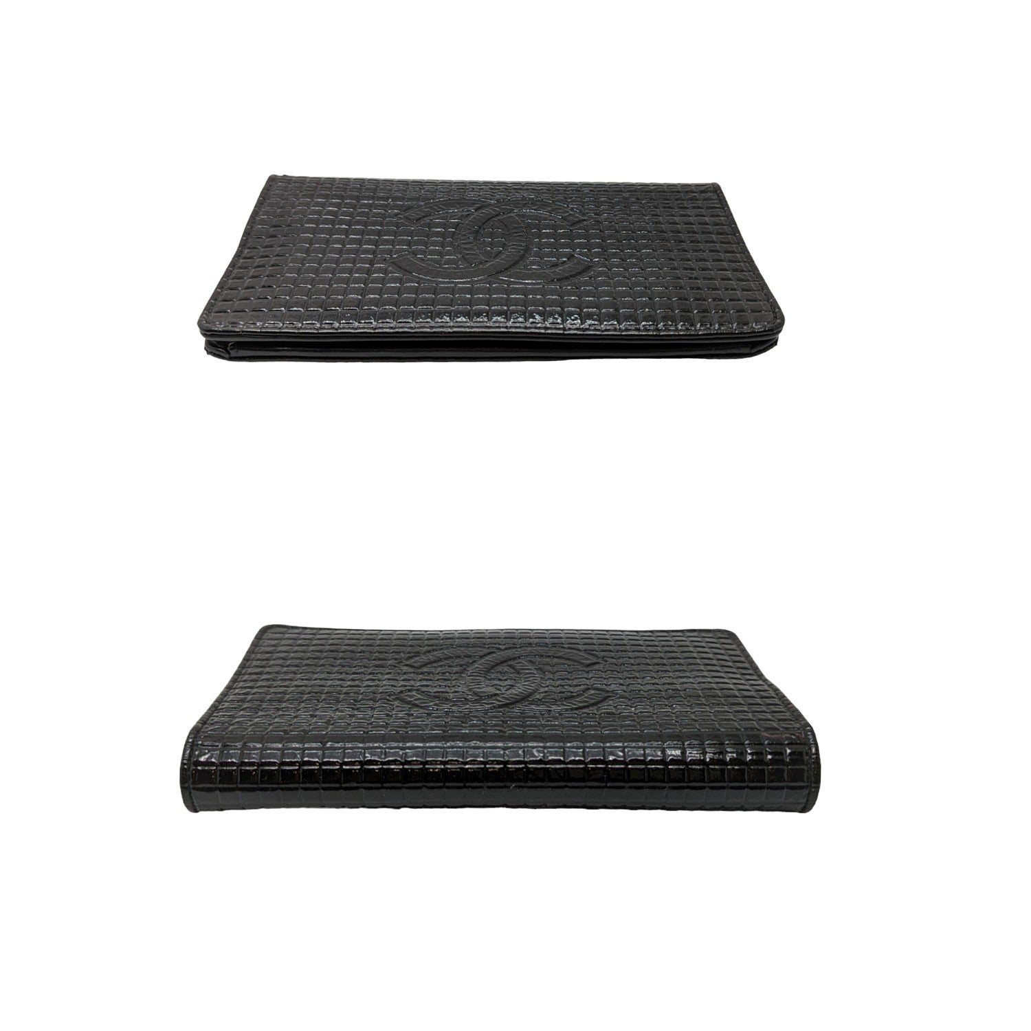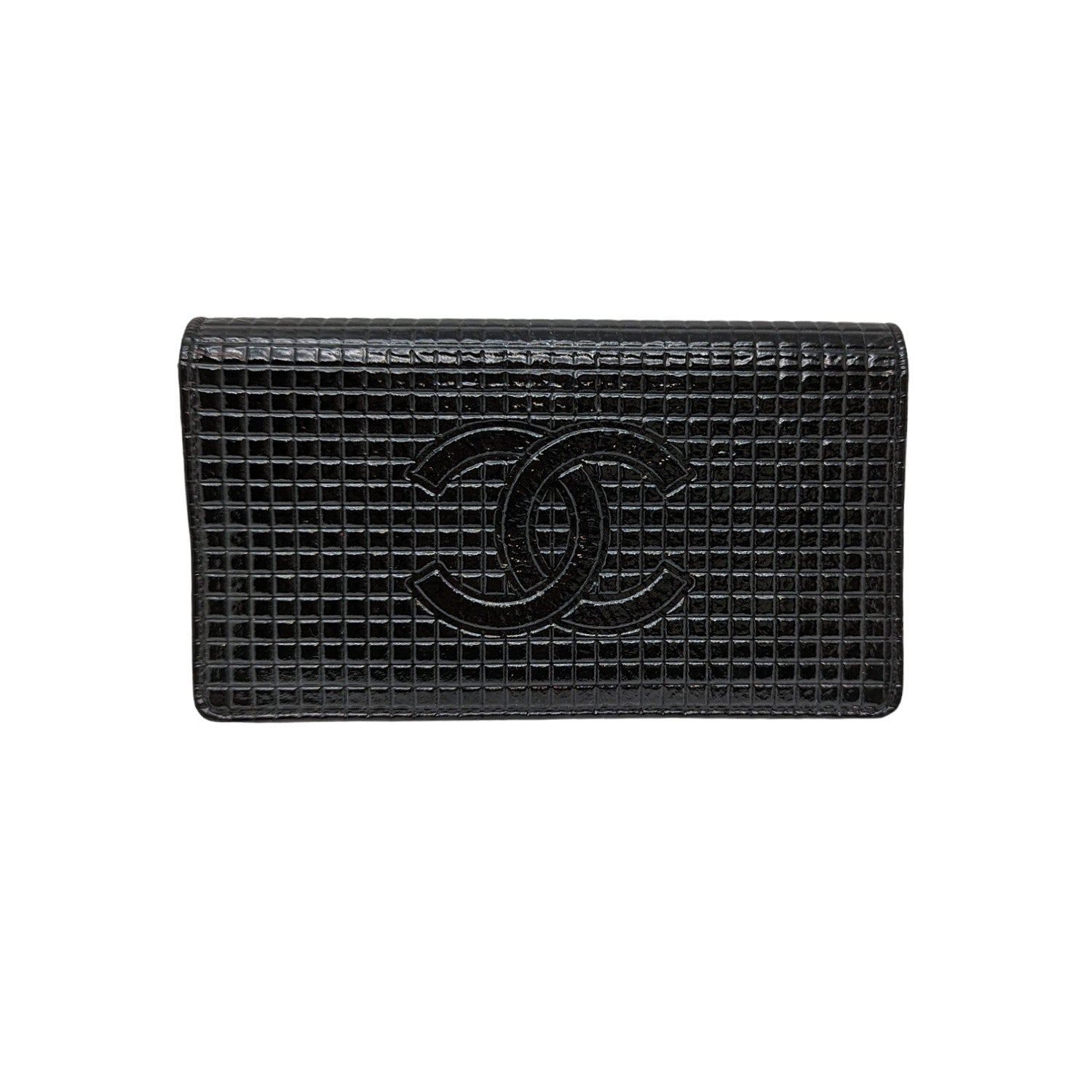 Chanel bag Micro Chocolate Bar Coco Mark Long Wallet by Karl Lagerfeld. Crafted of black patent leather with interlocking CC logo at front face, flap closure that opens to a tonal leather lining with plenty compartments, pocketsand card slots. Made in France.