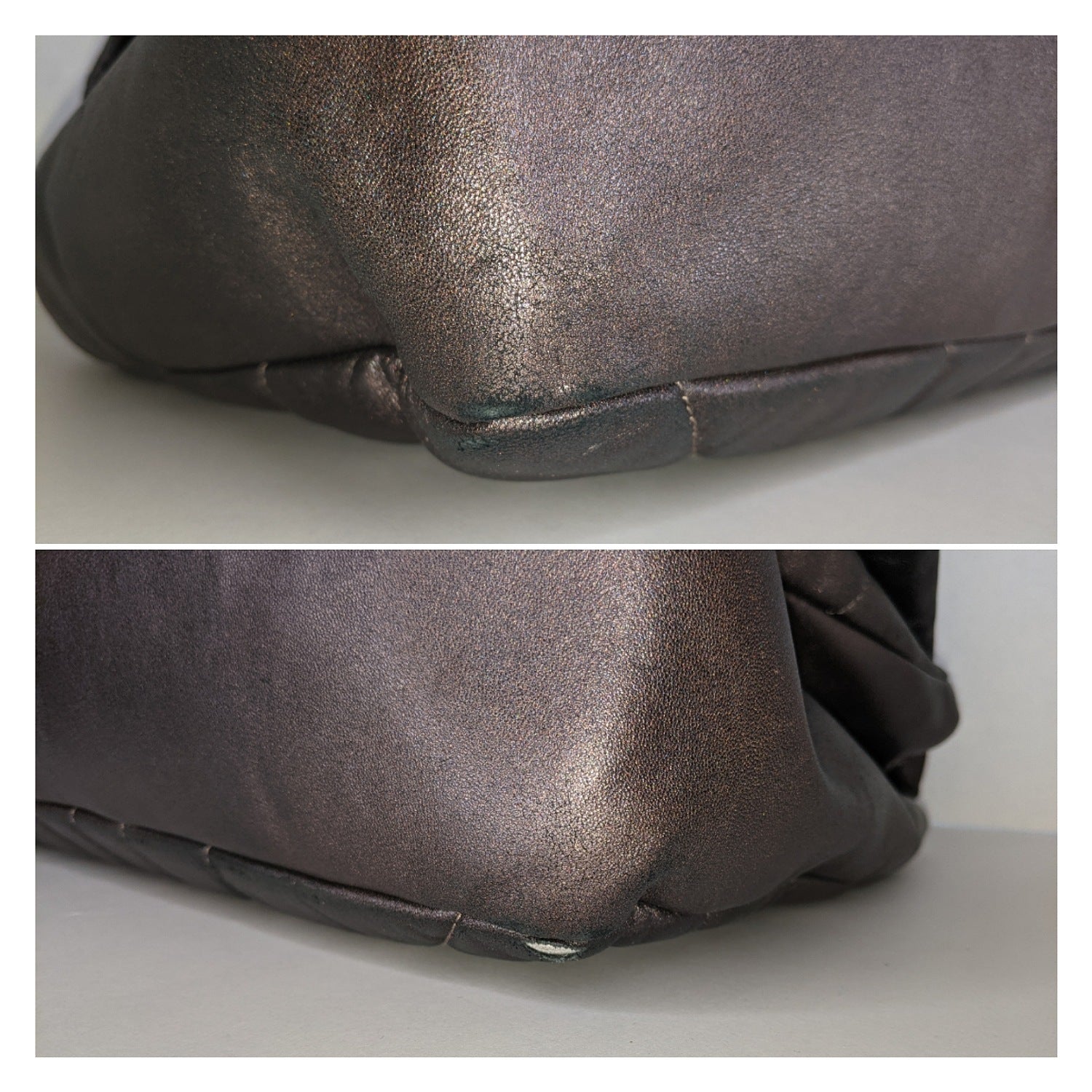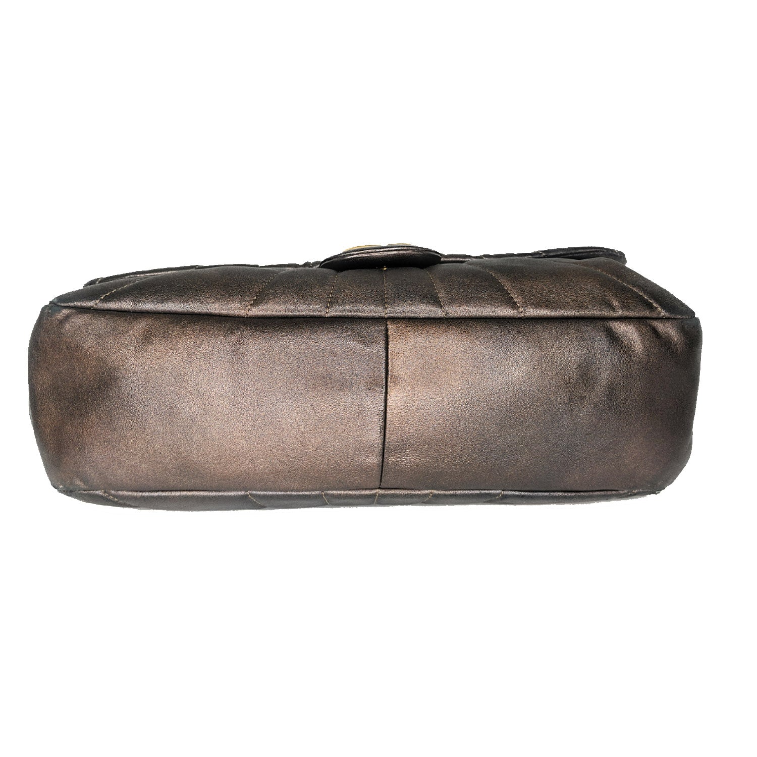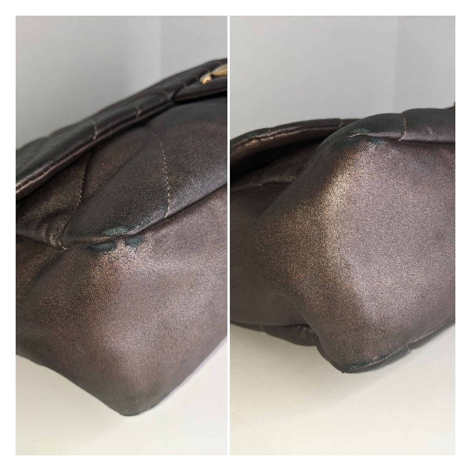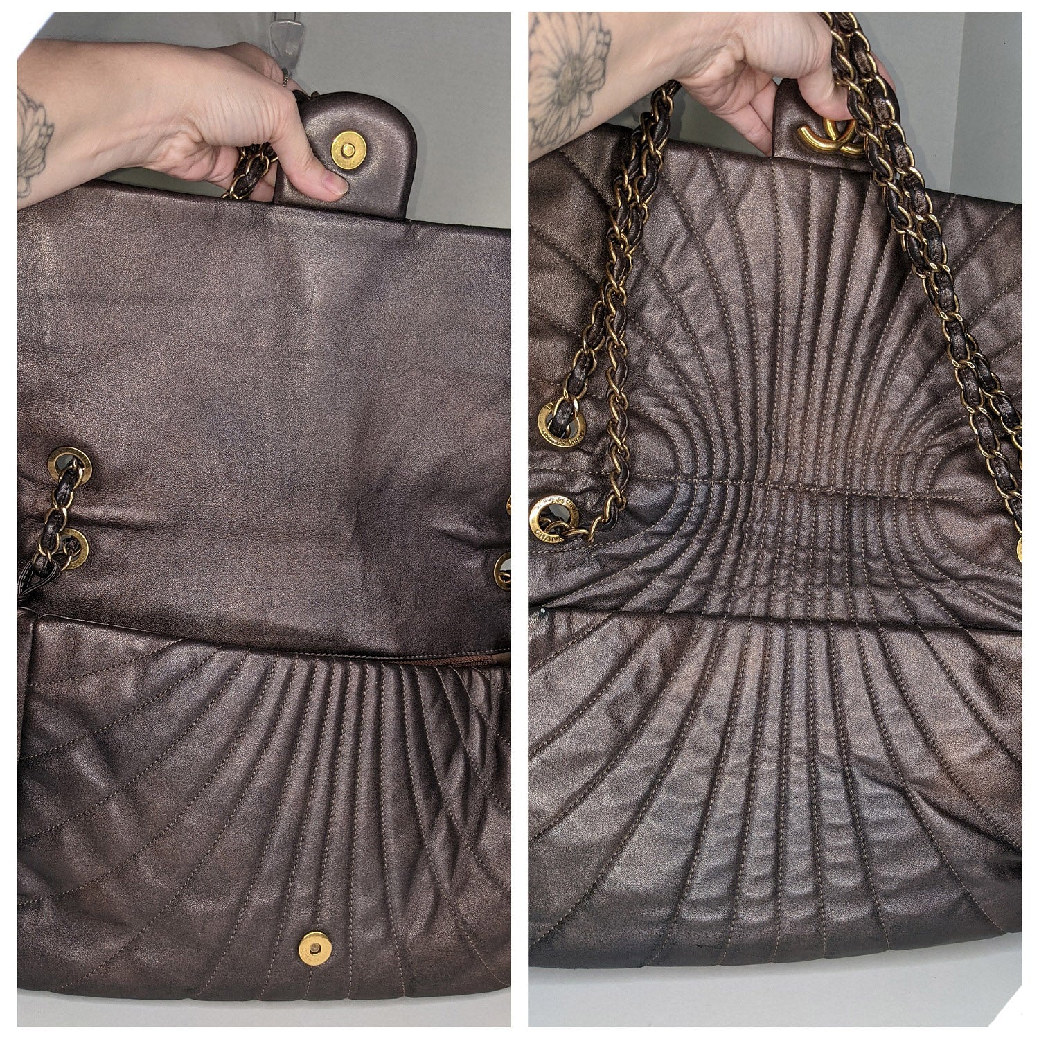 Metallic lambskin leather Chanel bag Paris-Shanghai Flap Bag with aged gold-tone hardware, convertible leather chain-link shoulder strap, satin lining, single interior zip pocket and magnetic snap closure at front flap.