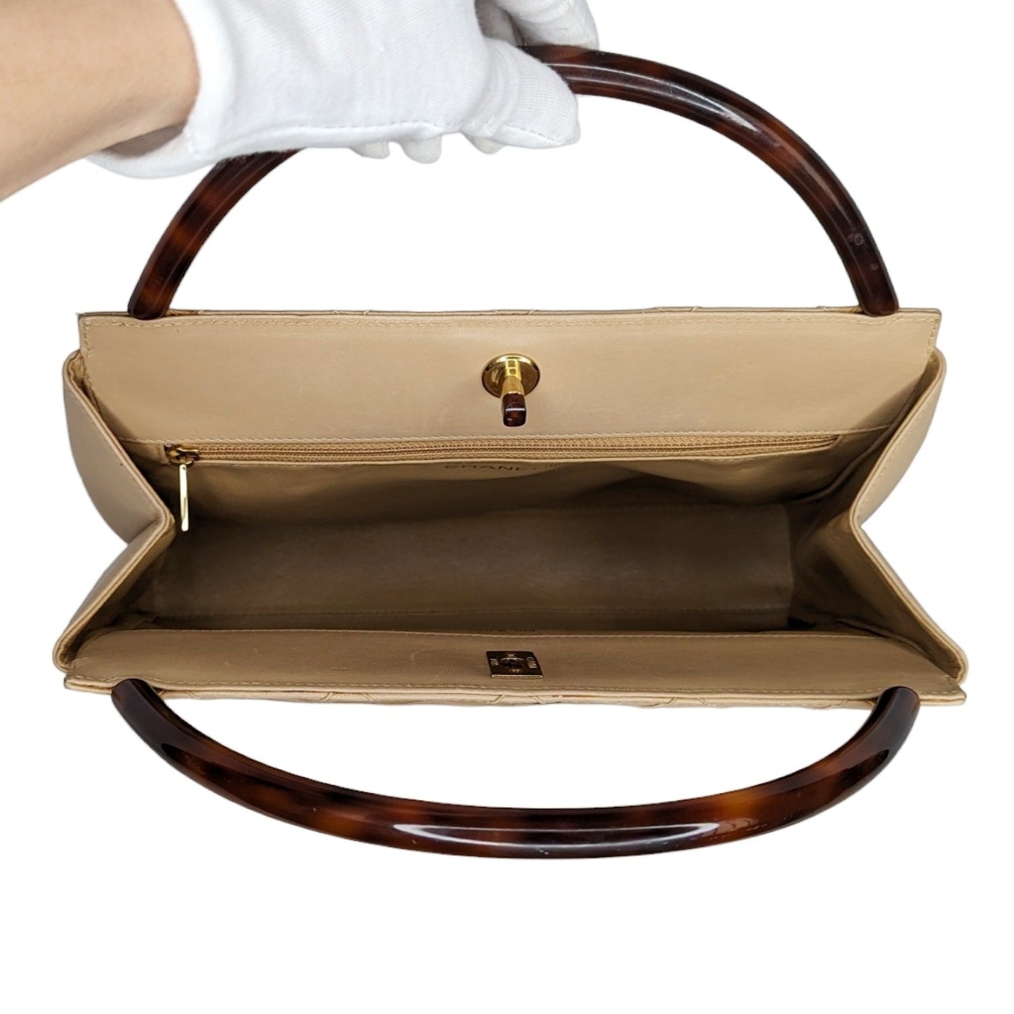 Chanel bag Vintage Beige Quilted Tortoise Motif Handle Bag