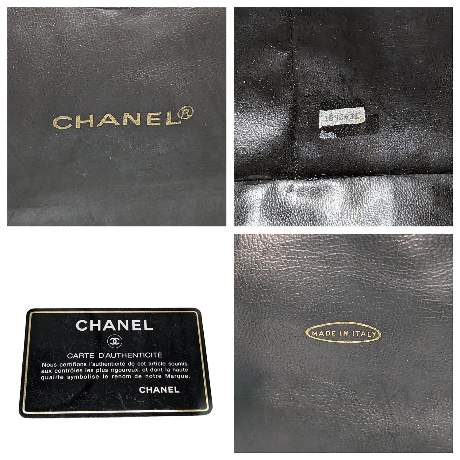 Chanel bag Vintage Grained Calfskin CC Drawstring Bucket Bag in Black. This stylish bucket-style shoulder bag is crafted of grained calfskin leather. The bag features a large leather Chanel bag CC logo patch and a gold chain link and leather shoulder strap with a cinch cord closure. The top opens to a supple leather lining with an attached zipper pouch.