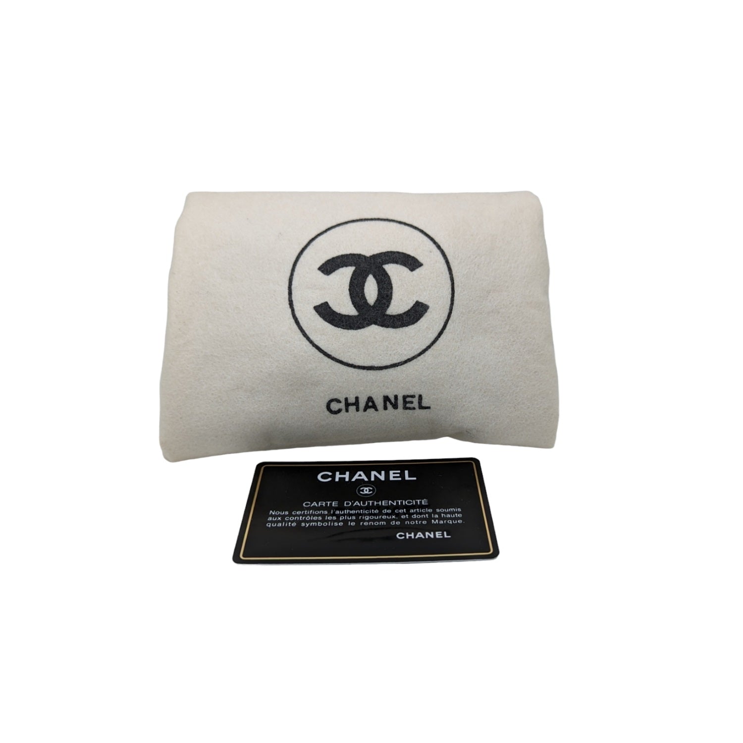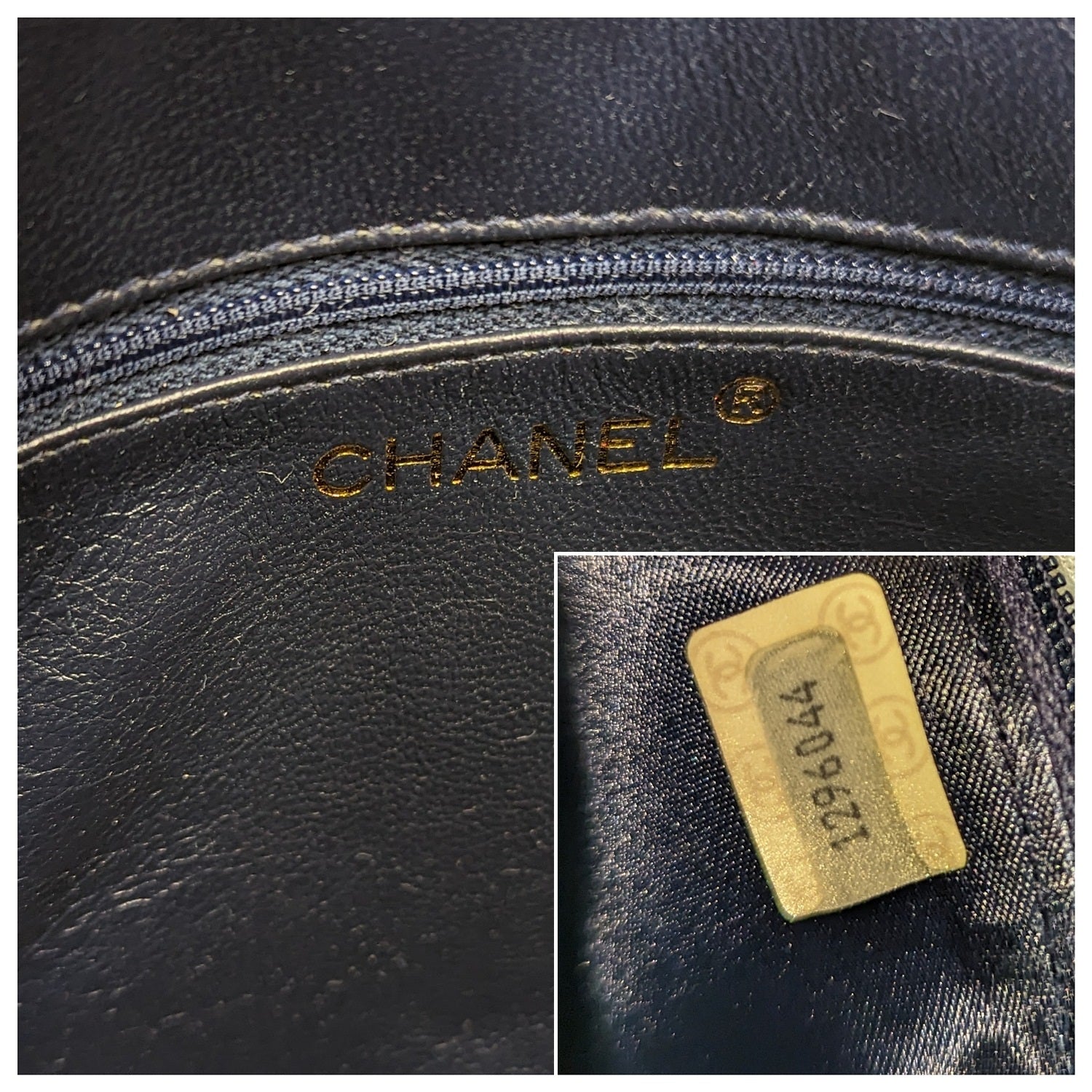 This navy-blue bag is crafted of supple lambskin leather with red and green diamond shapes with a tassel featuring a decorative quilted CC logo gold tone end cap. A red and green leather threaded chain link shoulder strap can be on the shoulder, as a shorter crossbody style or knotted together for a chic handheld style. Tonal leather lining with a single interior zip pocket.