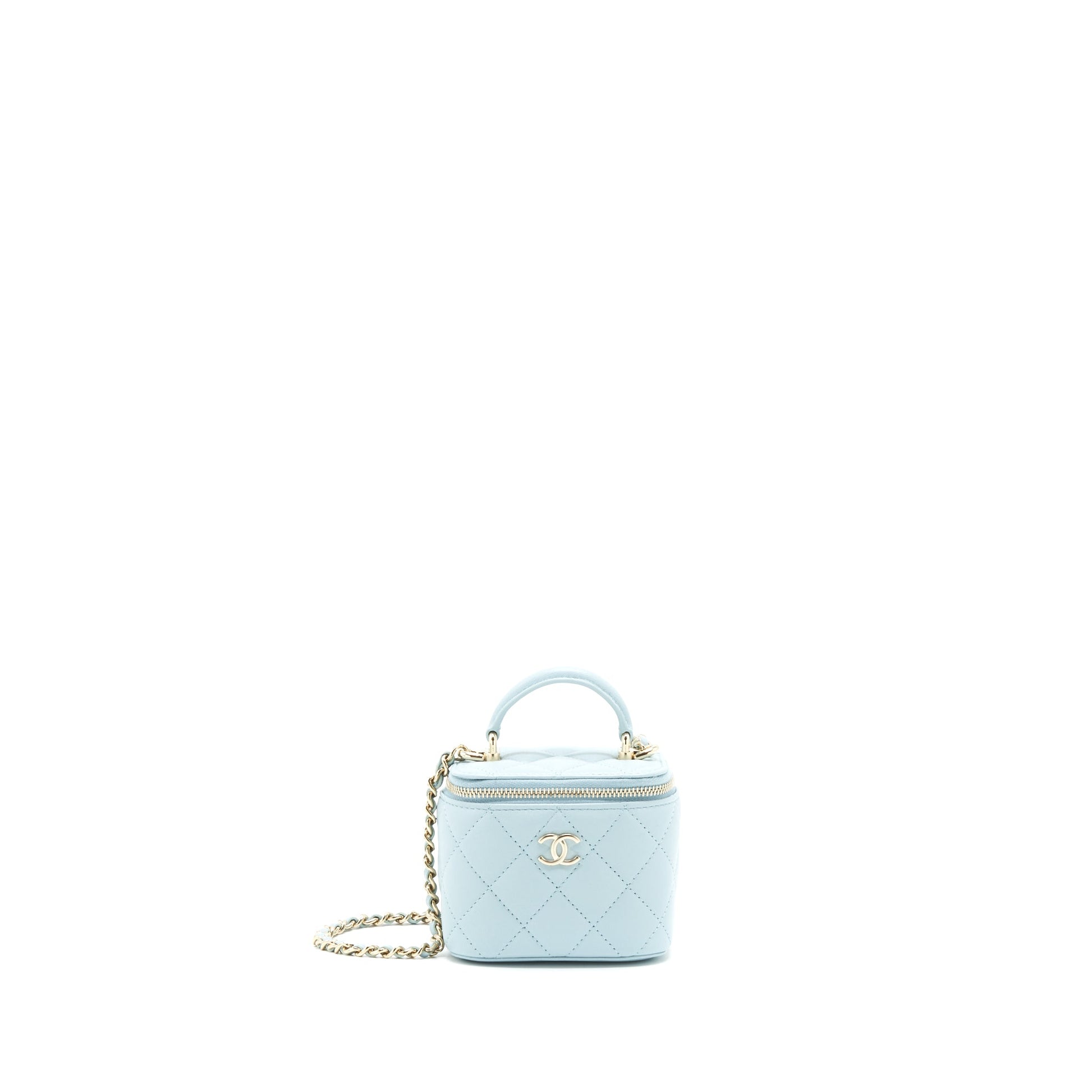 Chanel 22P Top Handle Mini Vanity With Chain Lambskin Light Blue LGHW