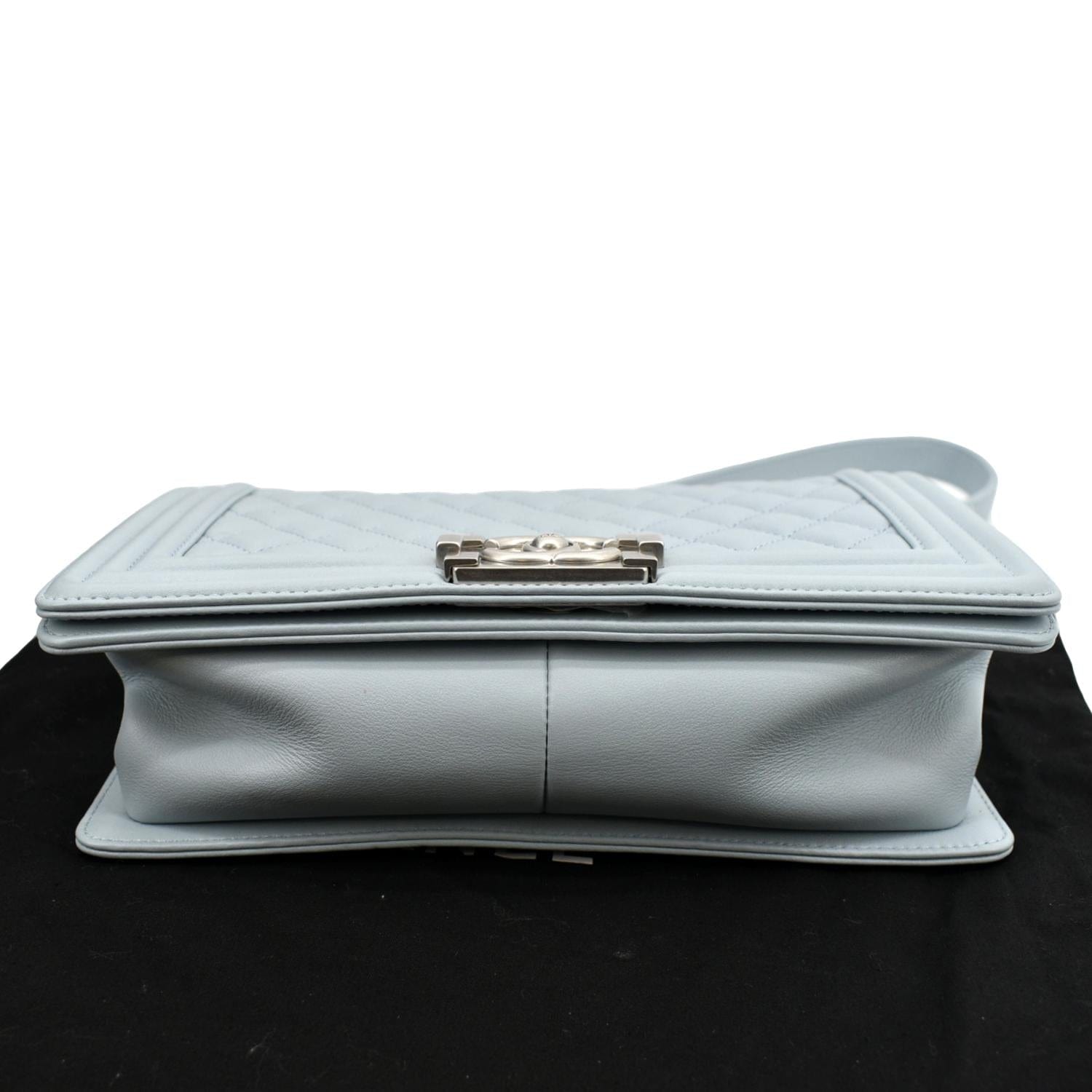 CHANEL Medium Boy Flap Quilted Leather Shoulder Bag Light Blue