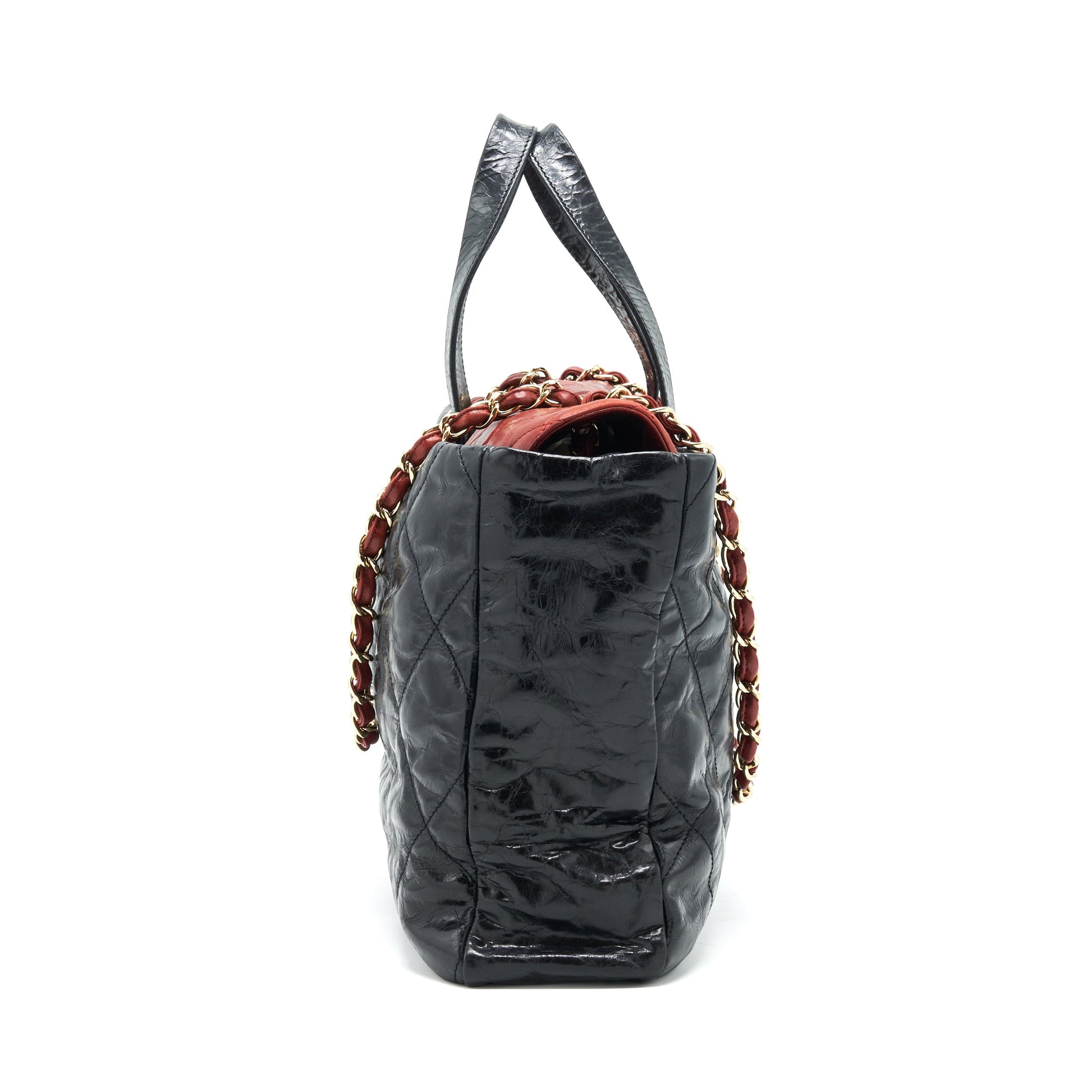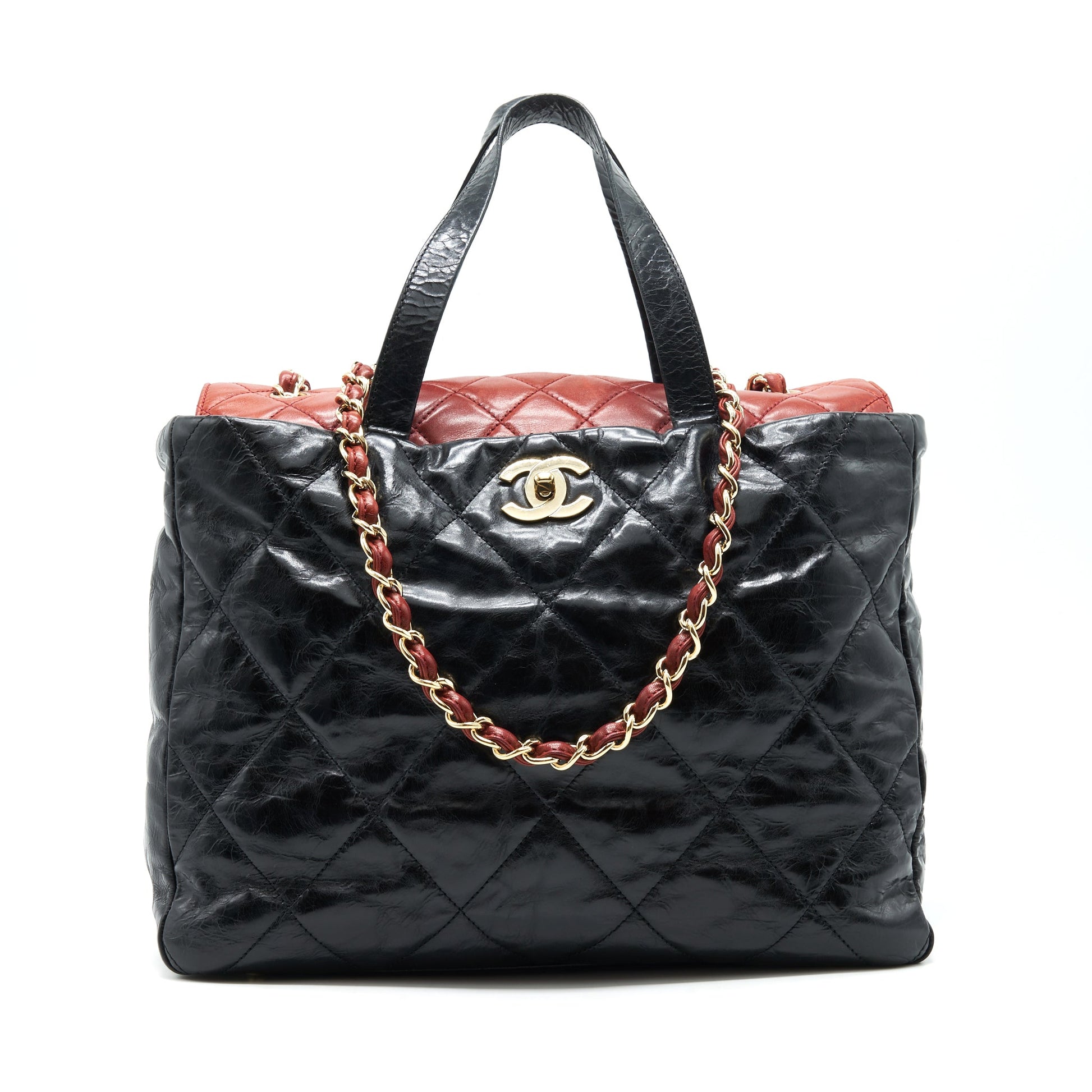 Chanel Calfskin Tote bag with Chain black and Red GHW