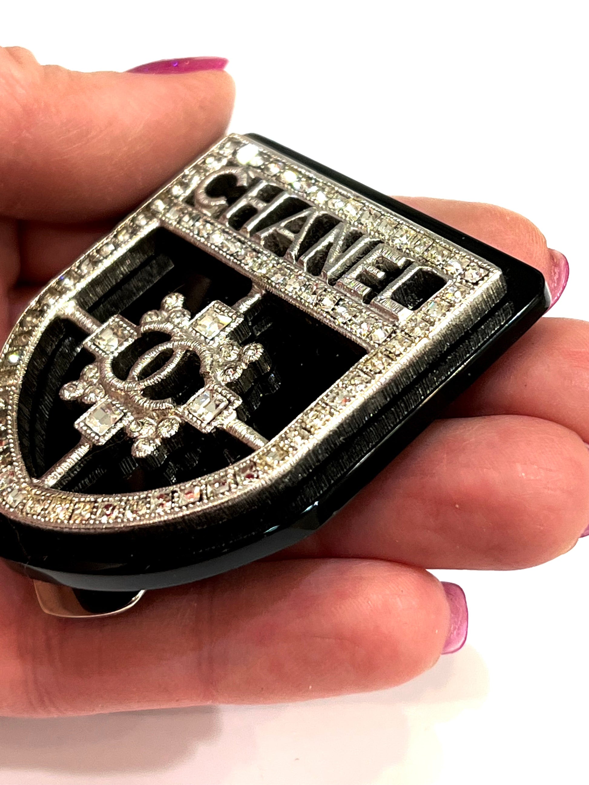 CHANEL CC Crystal Crest Shield Armor Brooch