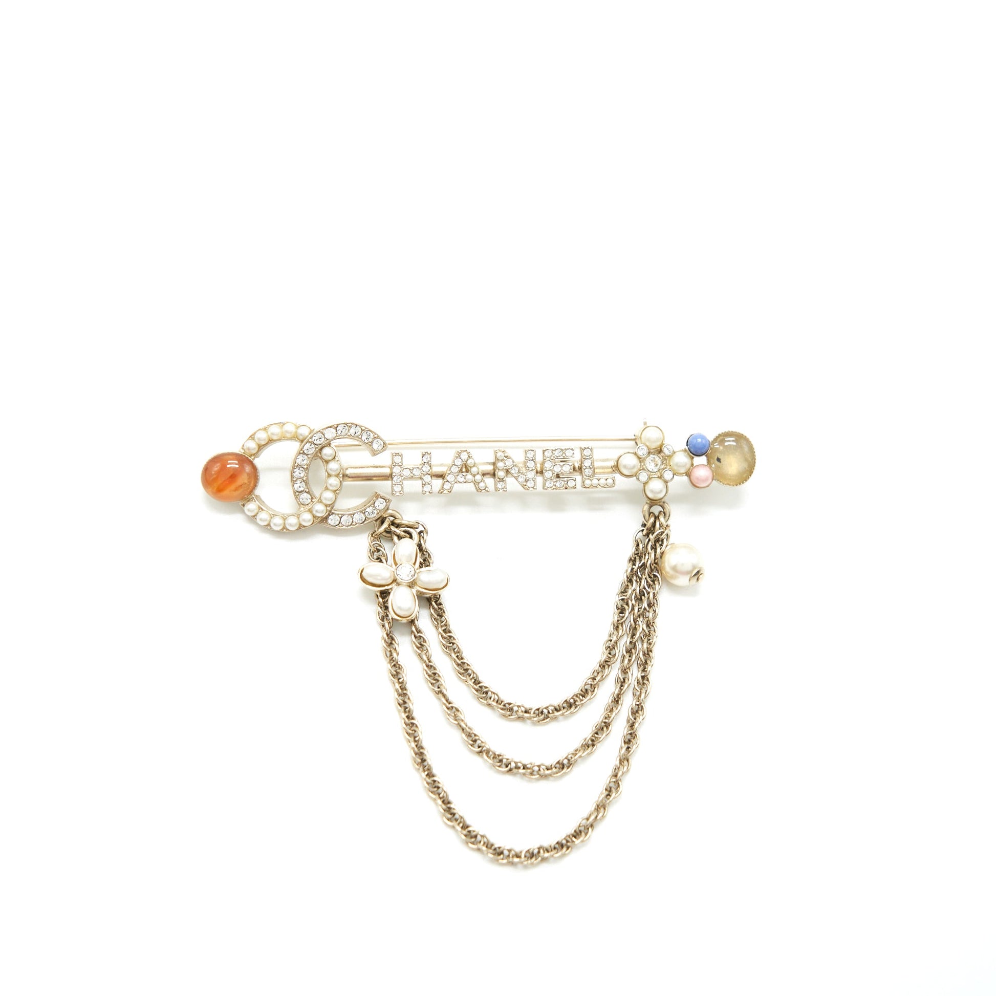 Chanel CC Letter With Chain Drop Brooch LGHW