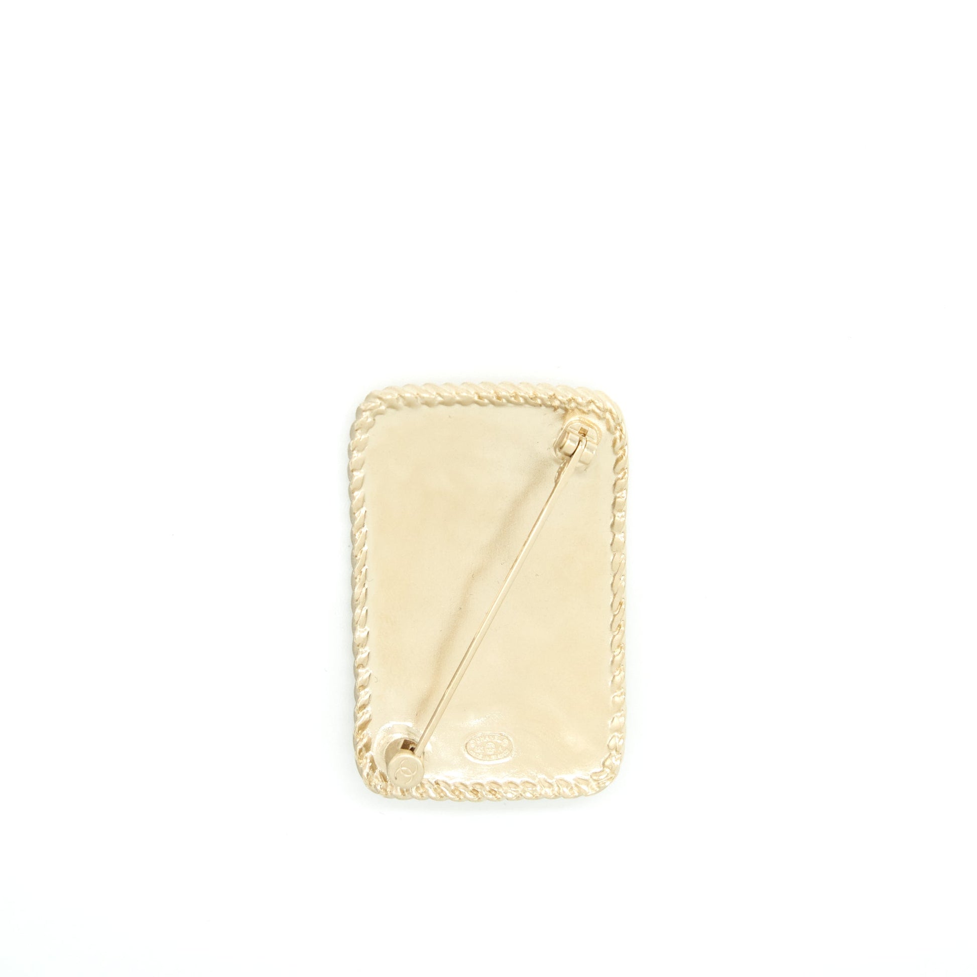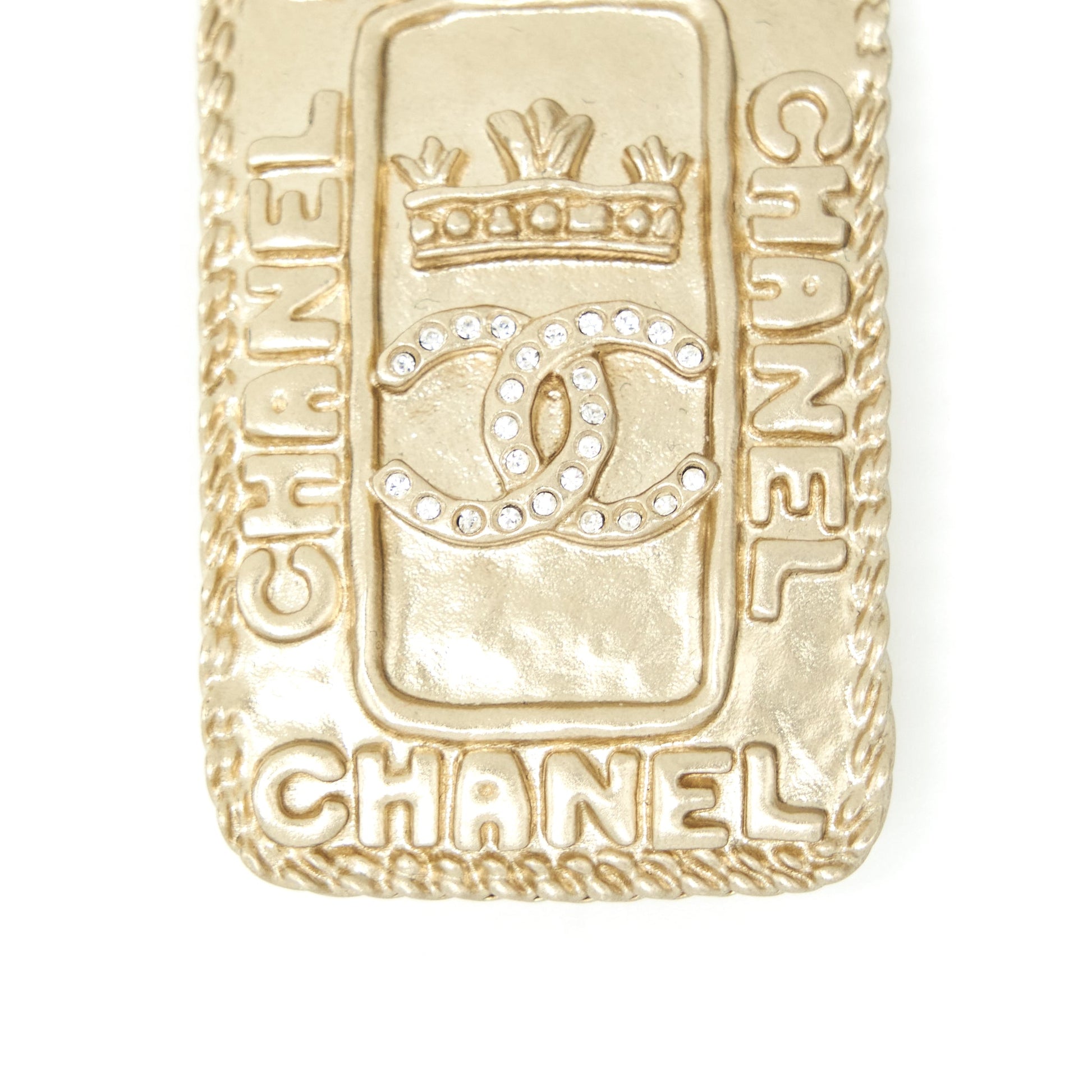 Chanel CC logo and crown metal plate brooch brushed LGHW