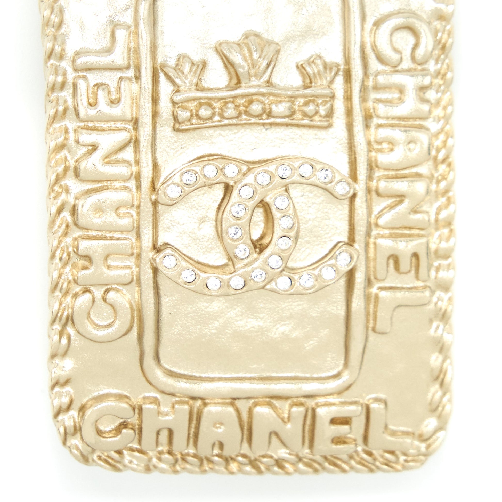 Chanel CC Logo And Crown Metal Plate Brooch Brushed LGHW