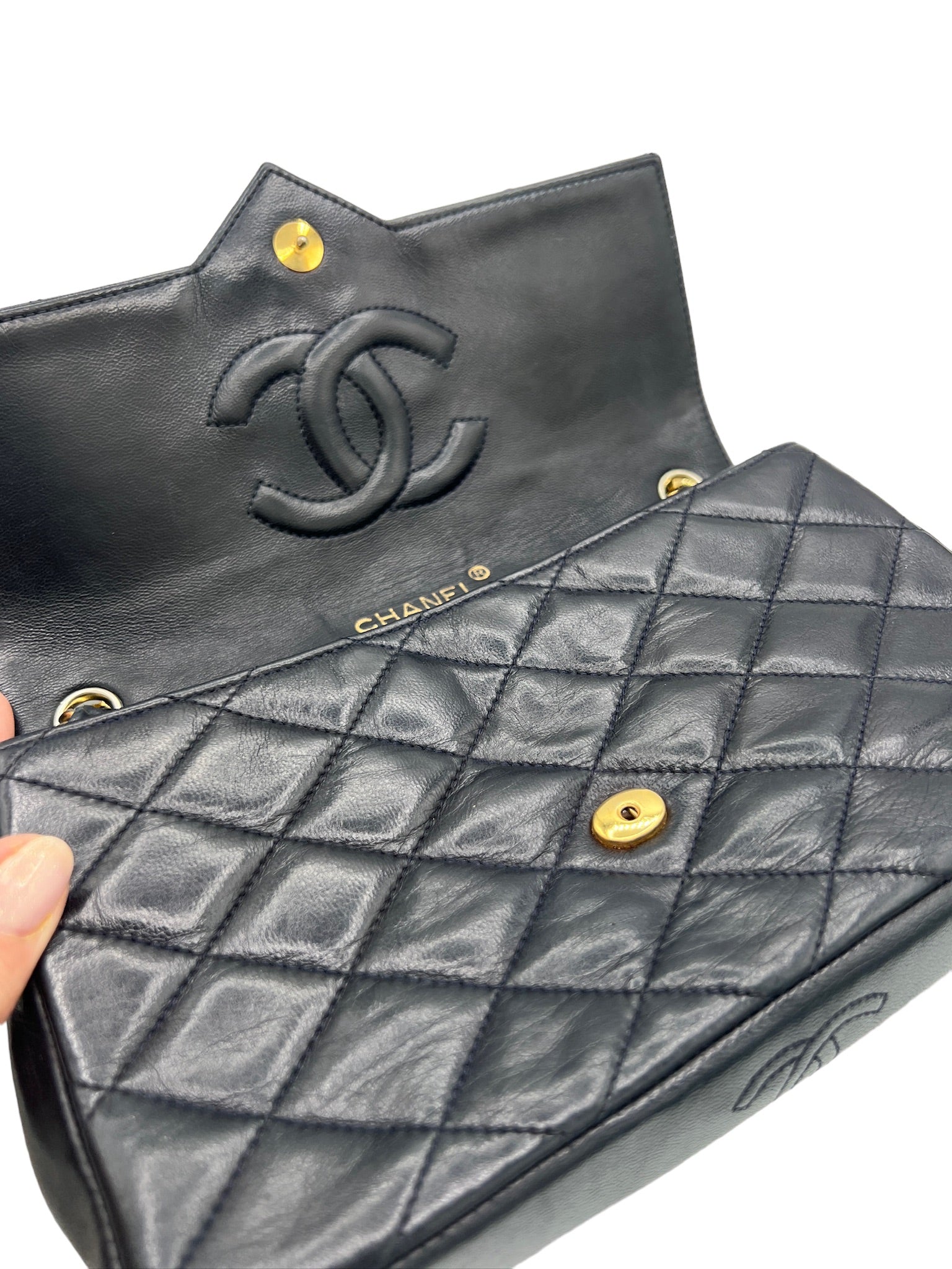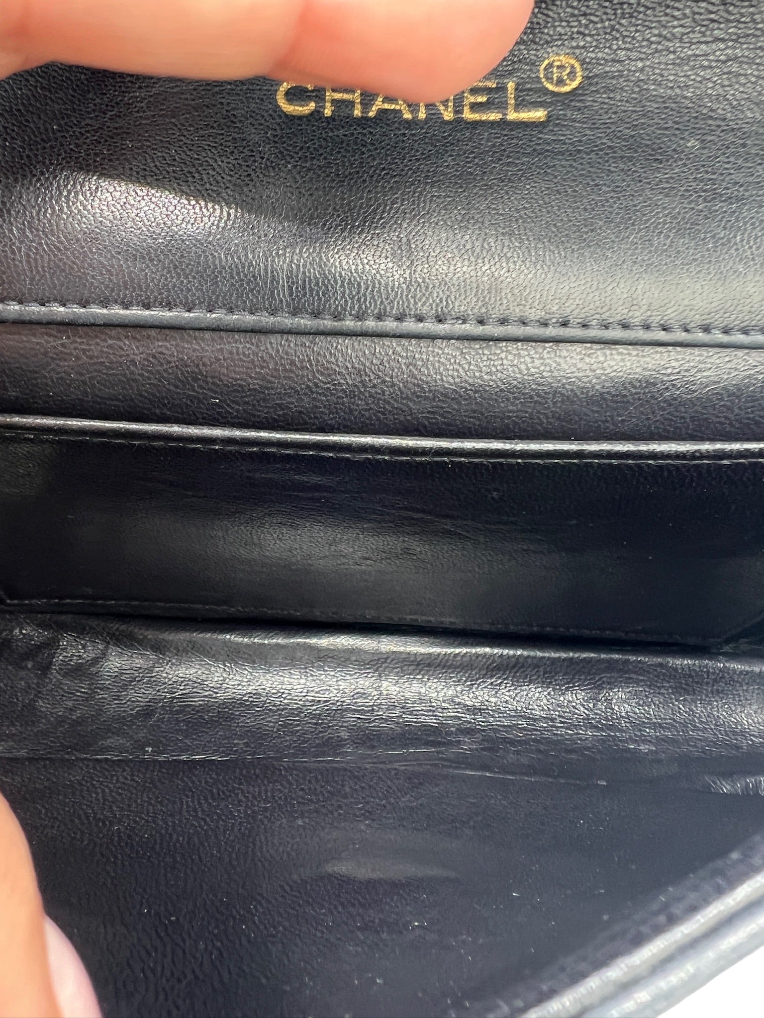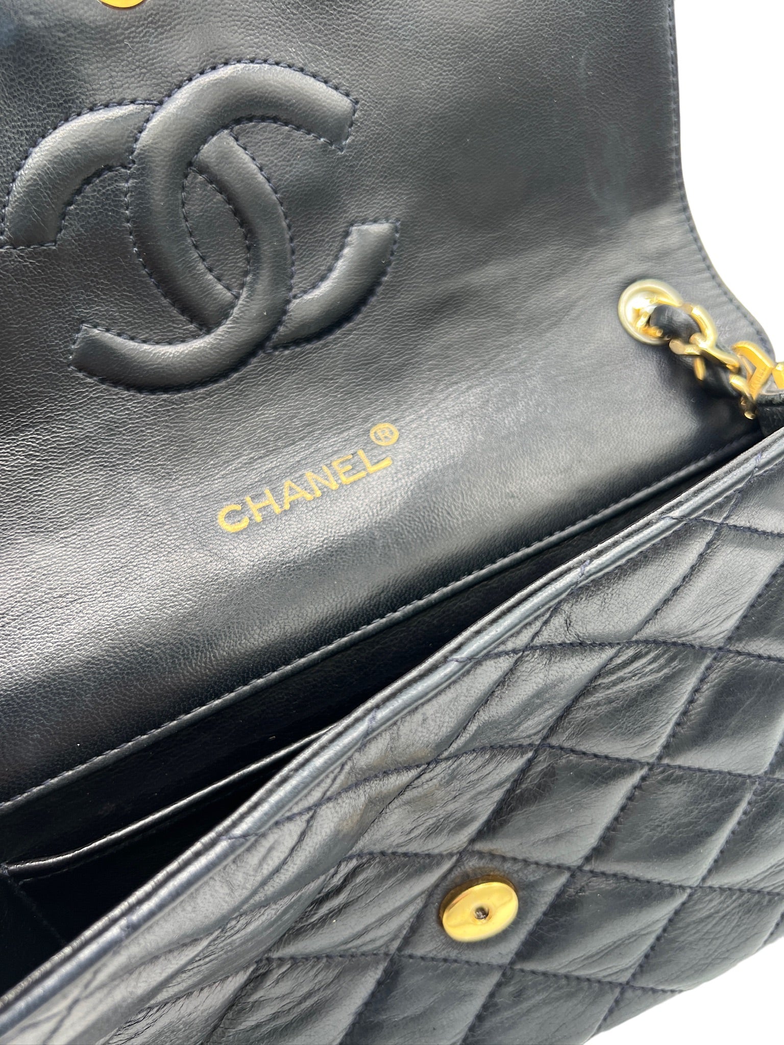 Although there are small signs of wear outside and inside flap, it doesn't take away from the overall beauty and elegance that the CC logo flap shoulder bag brings. The golden toned hardware adds a touch of luxury to the design, and there are only minor scratches on it.