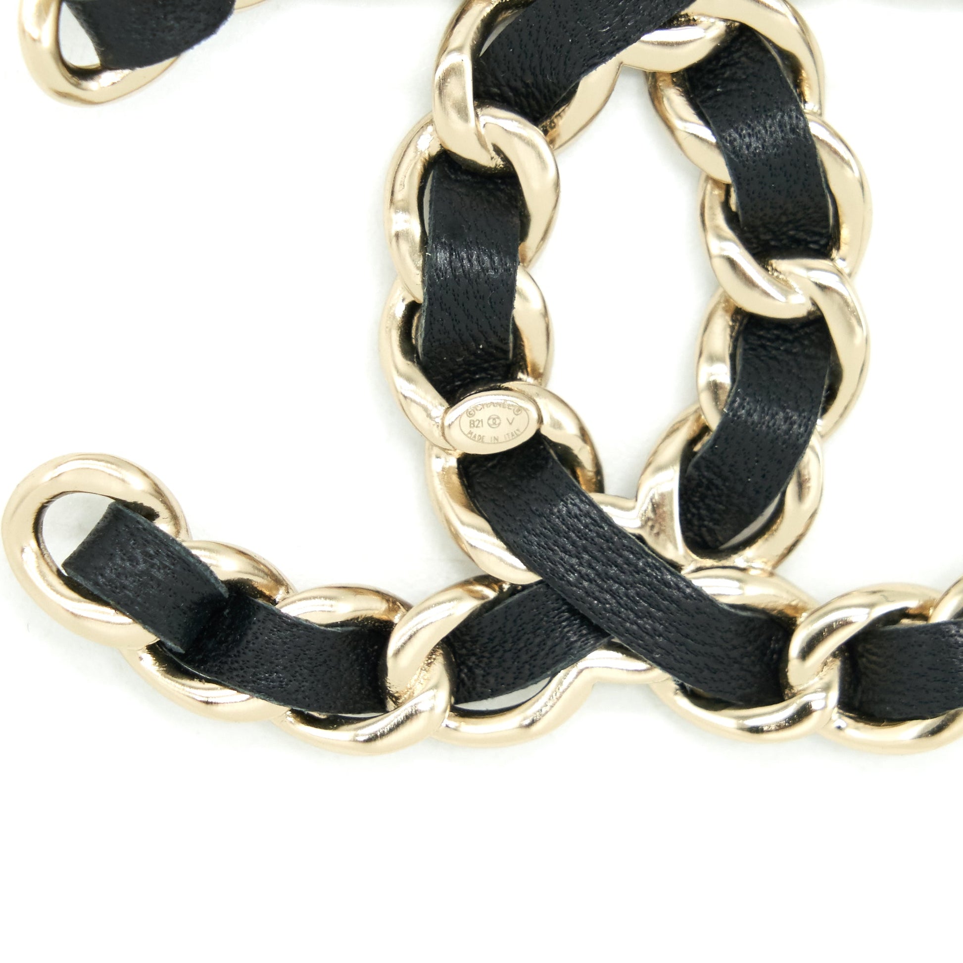 Chanel CC Logo Leather Chain Brooch Black LGHW