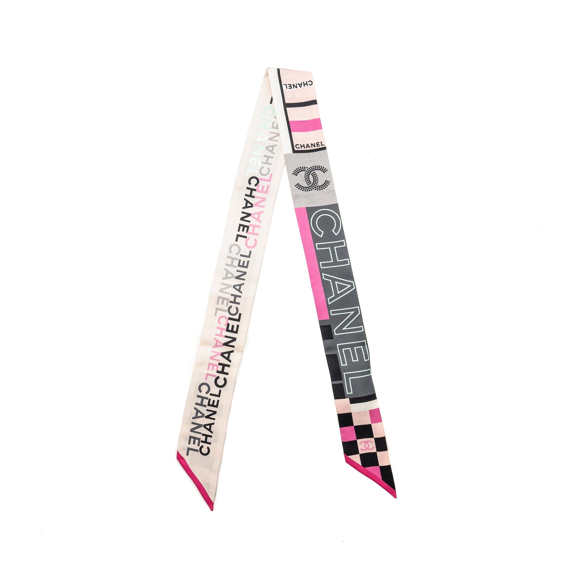 Chanel CC Logo Printed Twilly Silk Pink/multicolour
