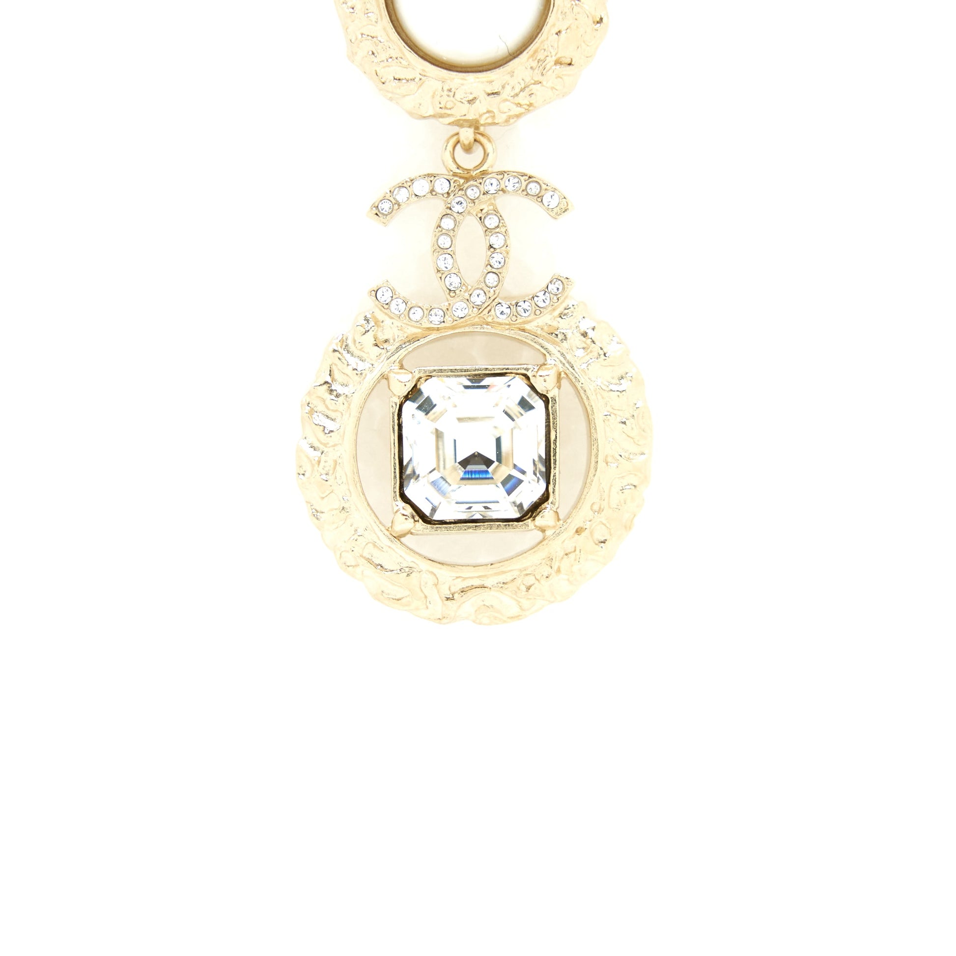 Chanel CC Logo With Pearls And Square Crystals Earrings LGHW