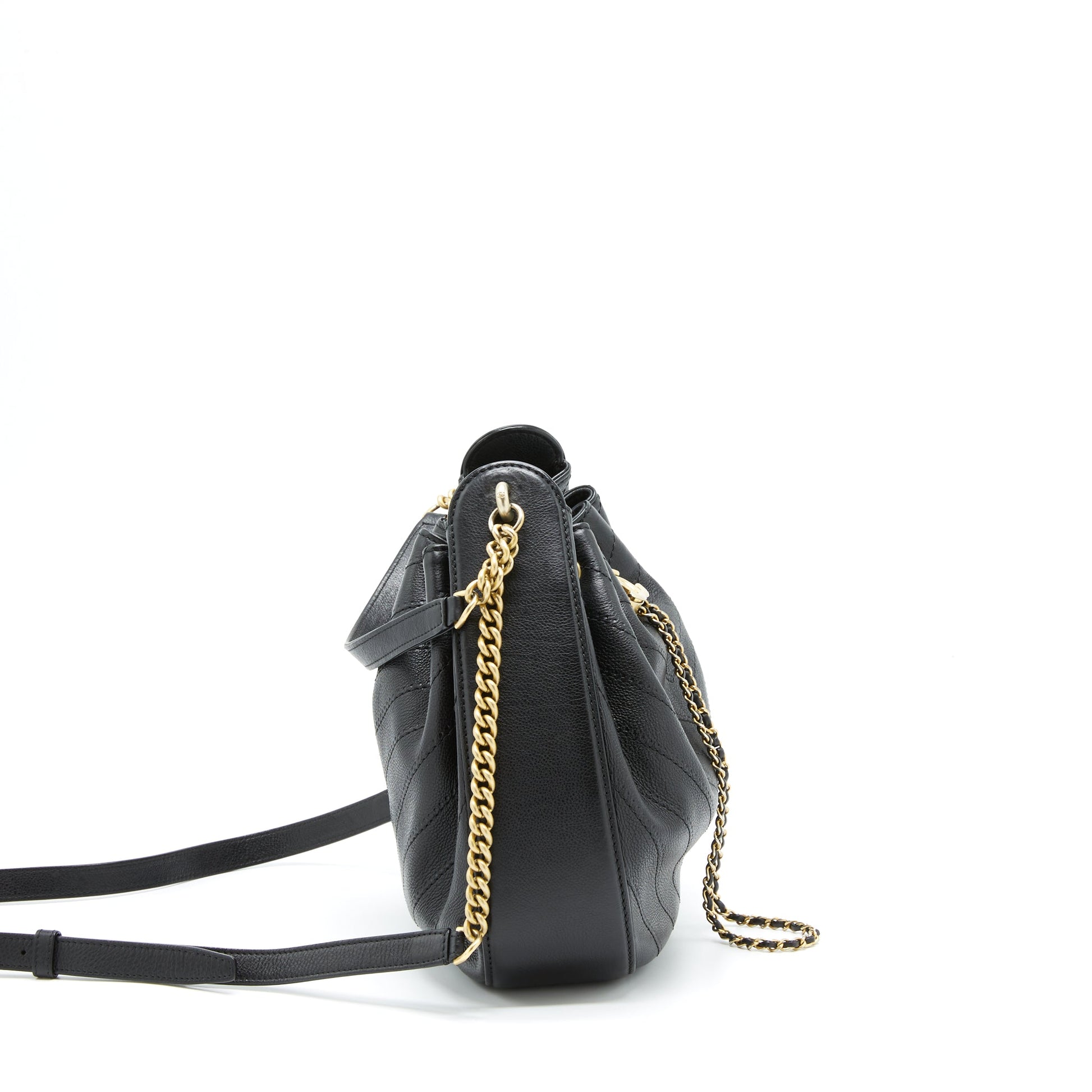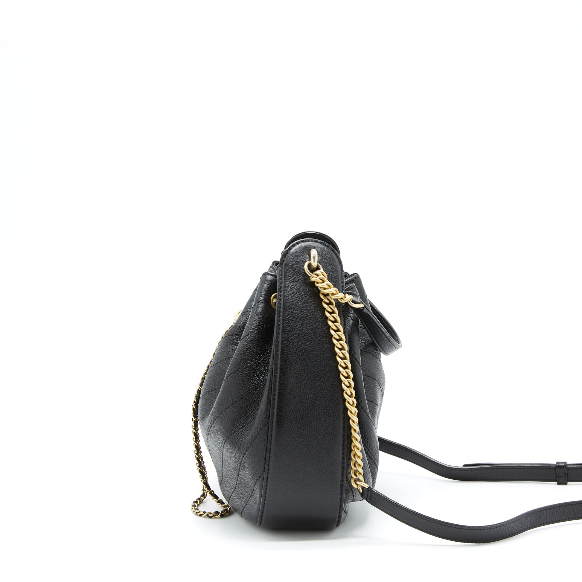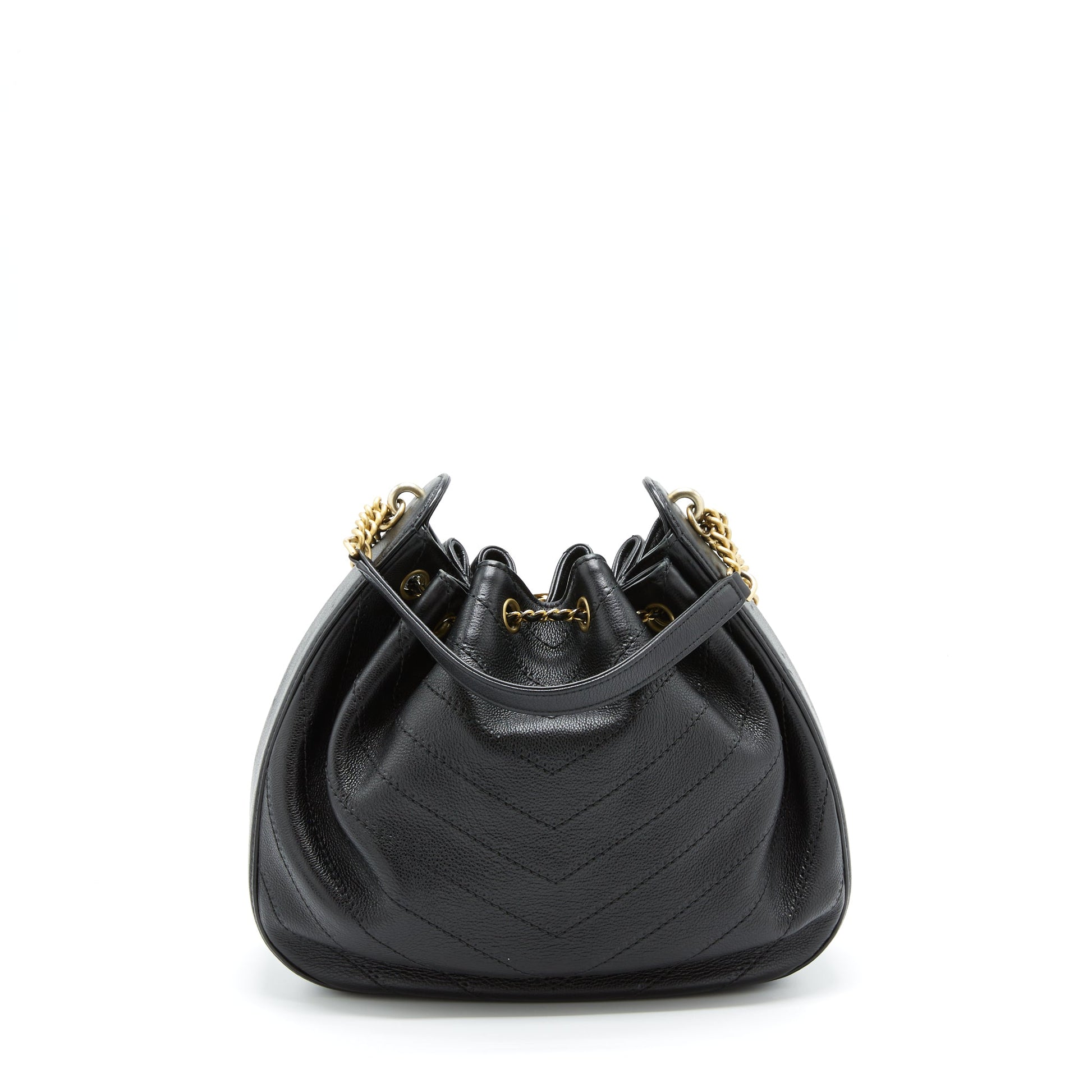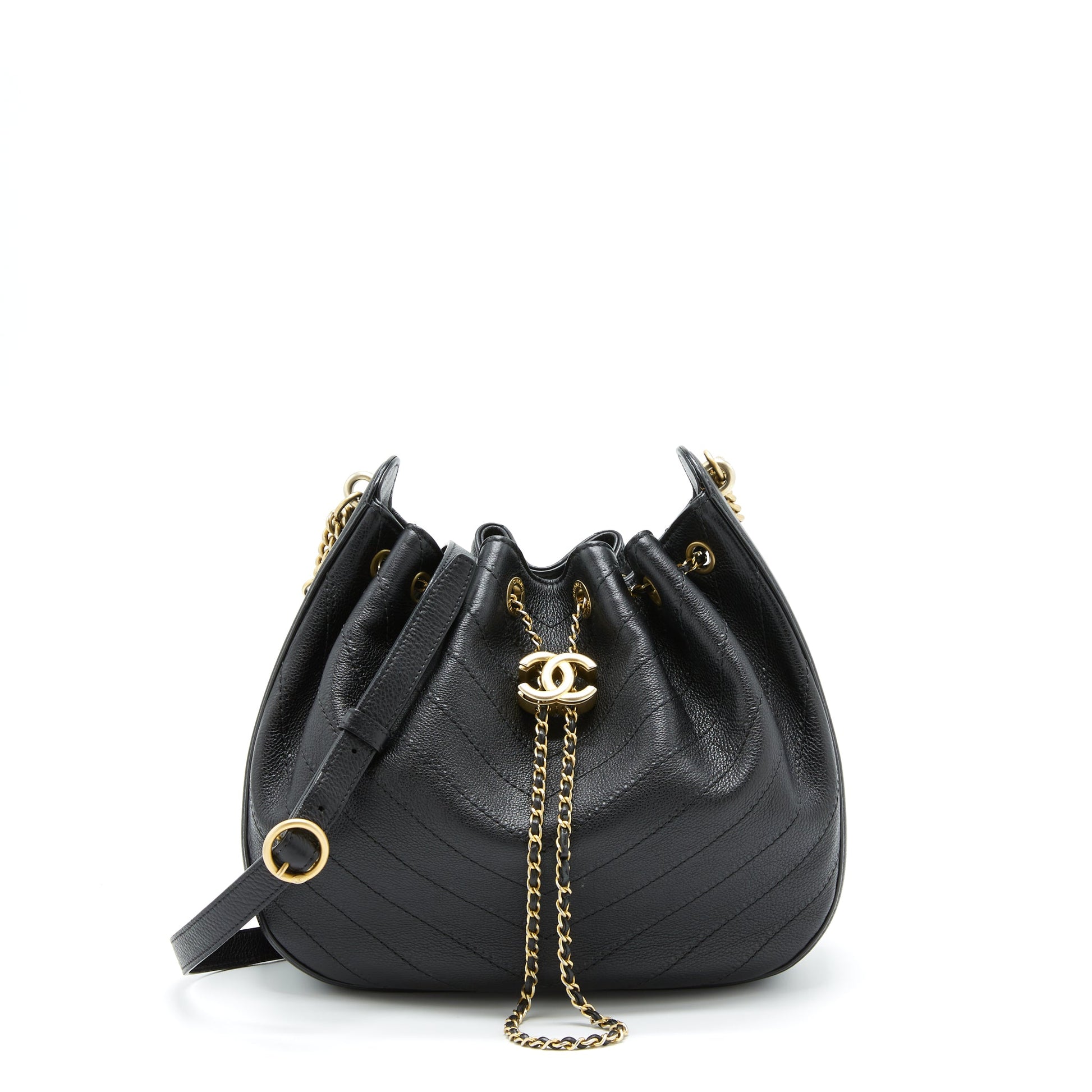 Chanel Chevron Bucket Bag Grained Calfskin Black GHW
