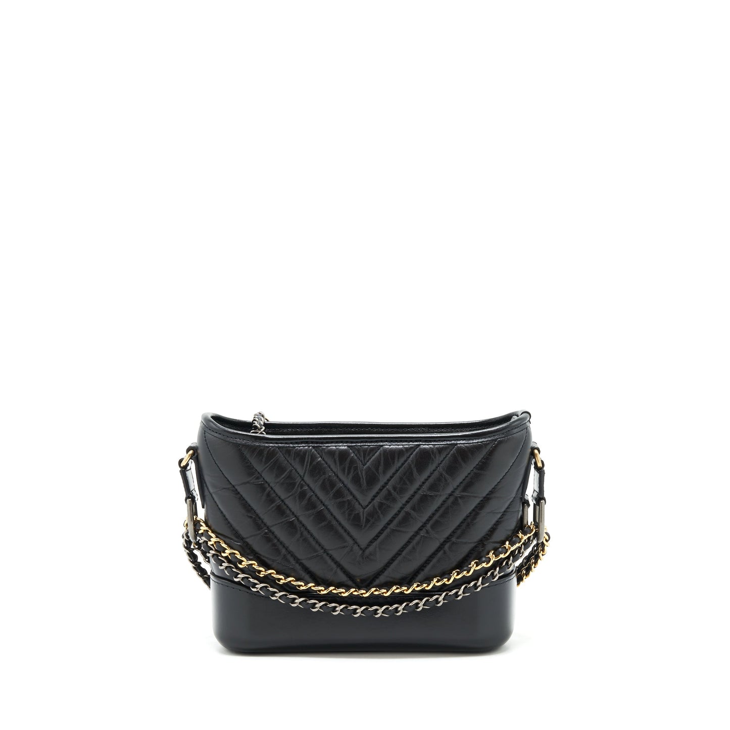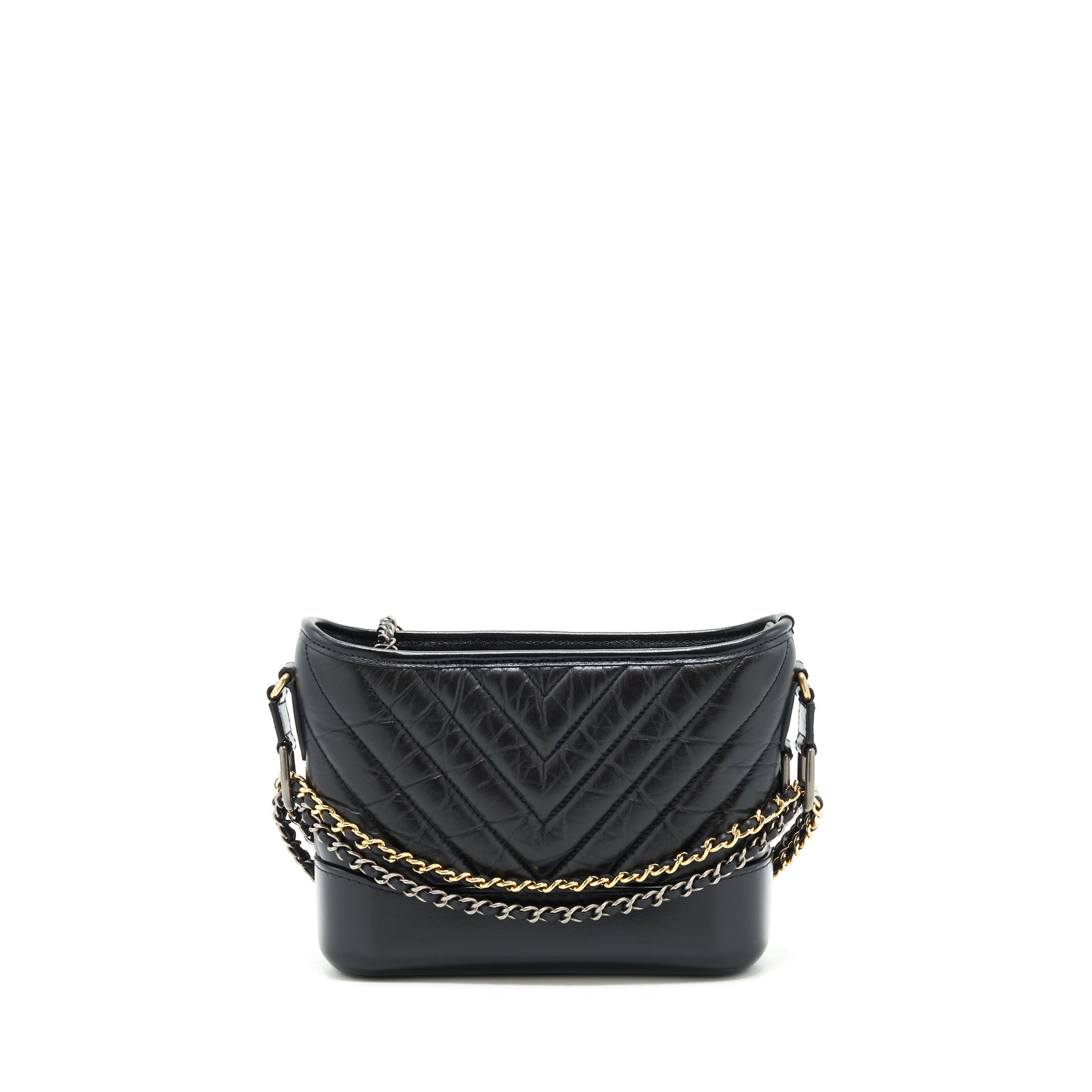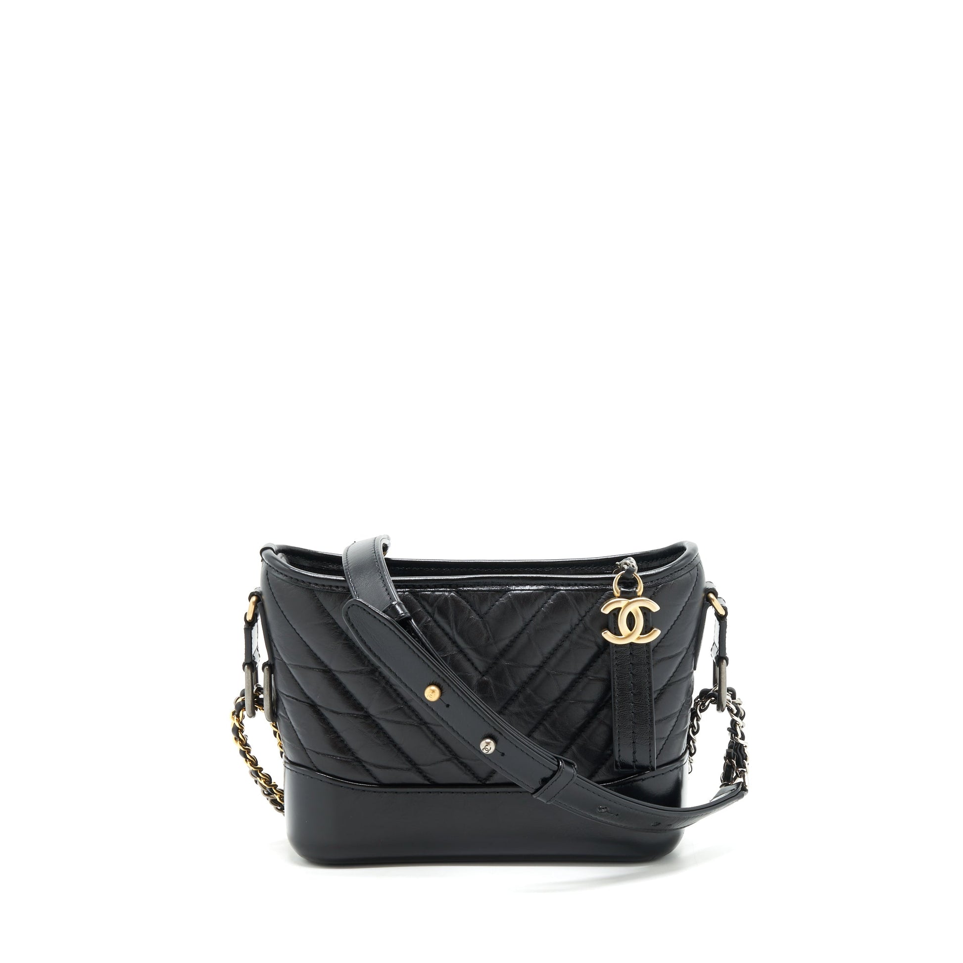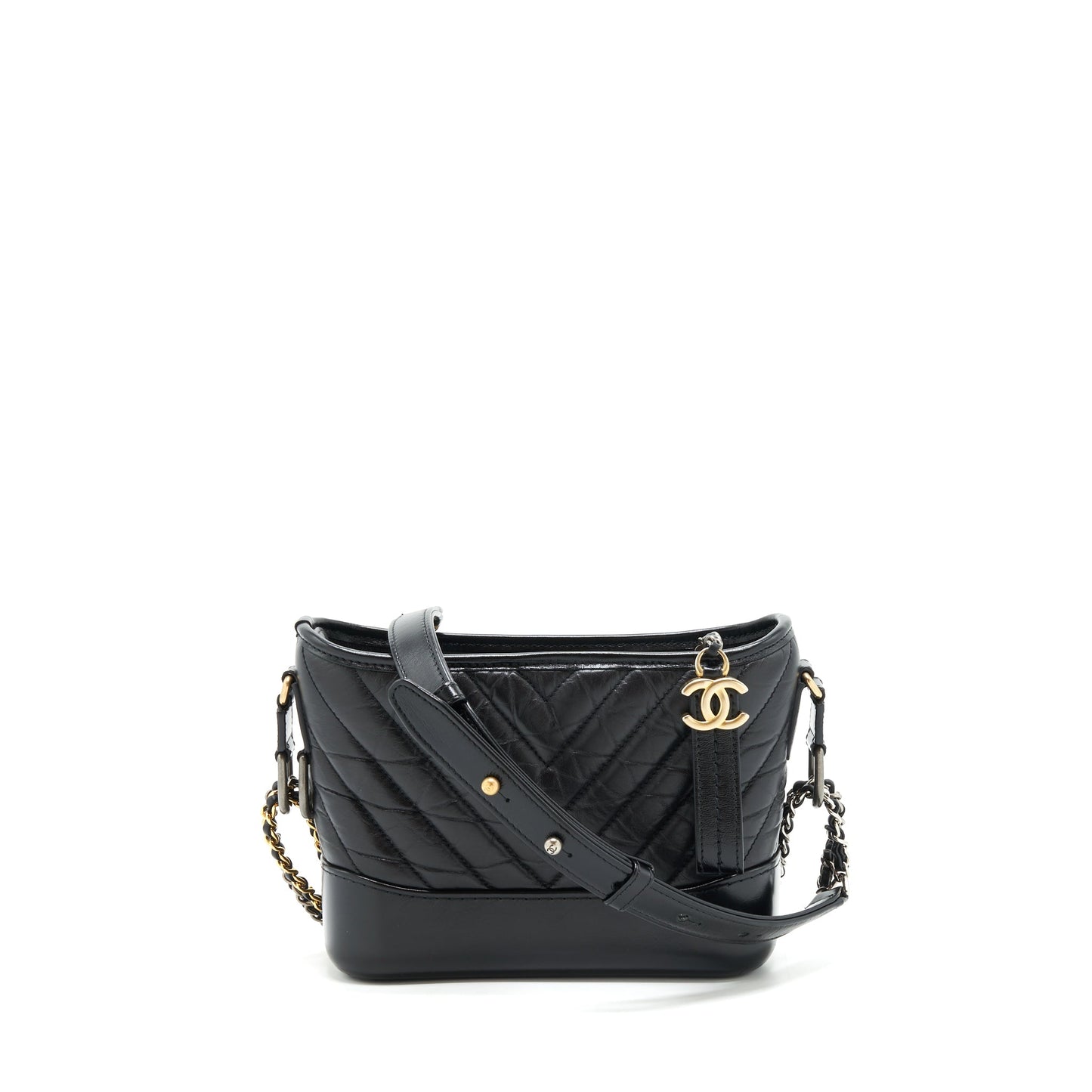 Chanel Chevron Gabrielle Hobo Bag black with Gold and silver hardware