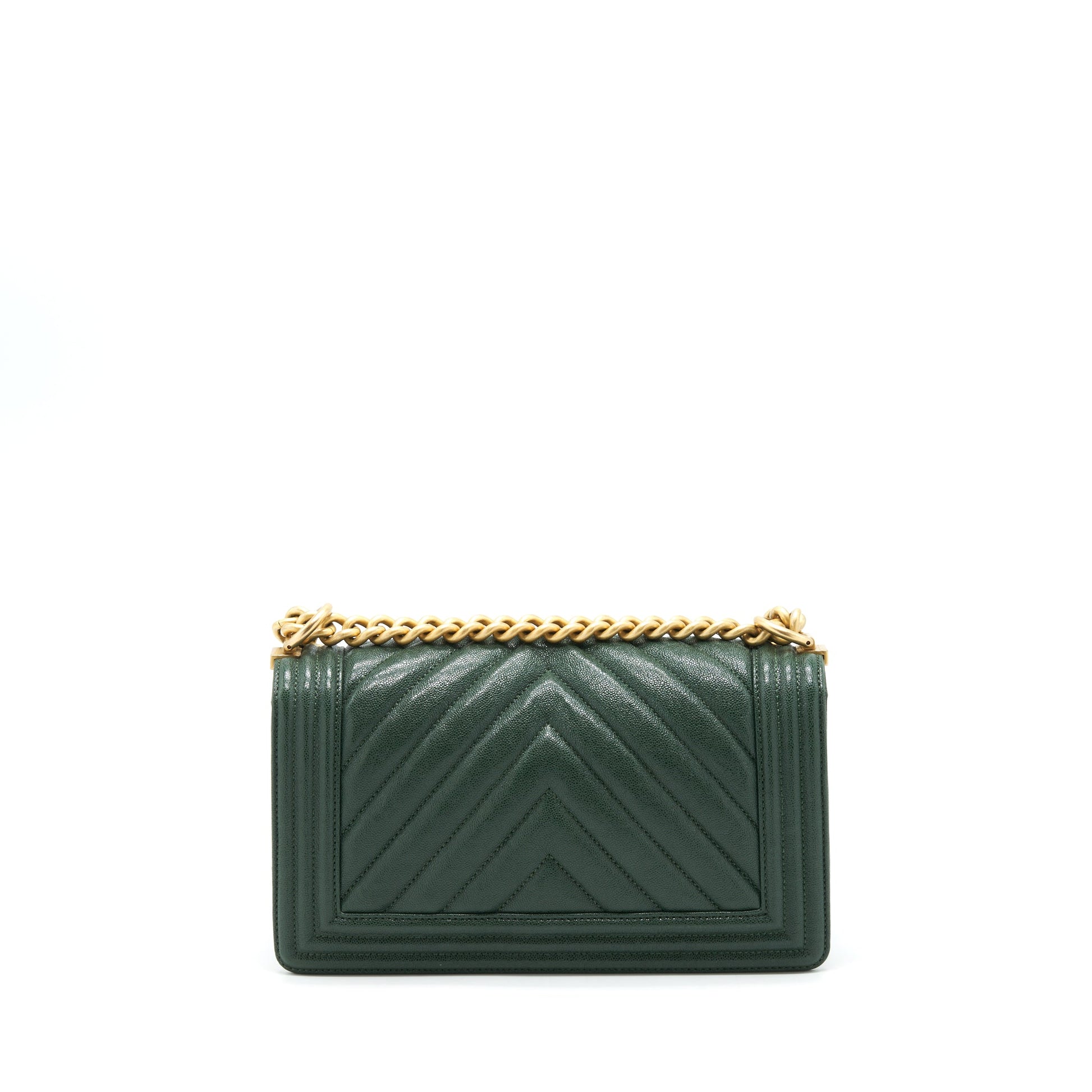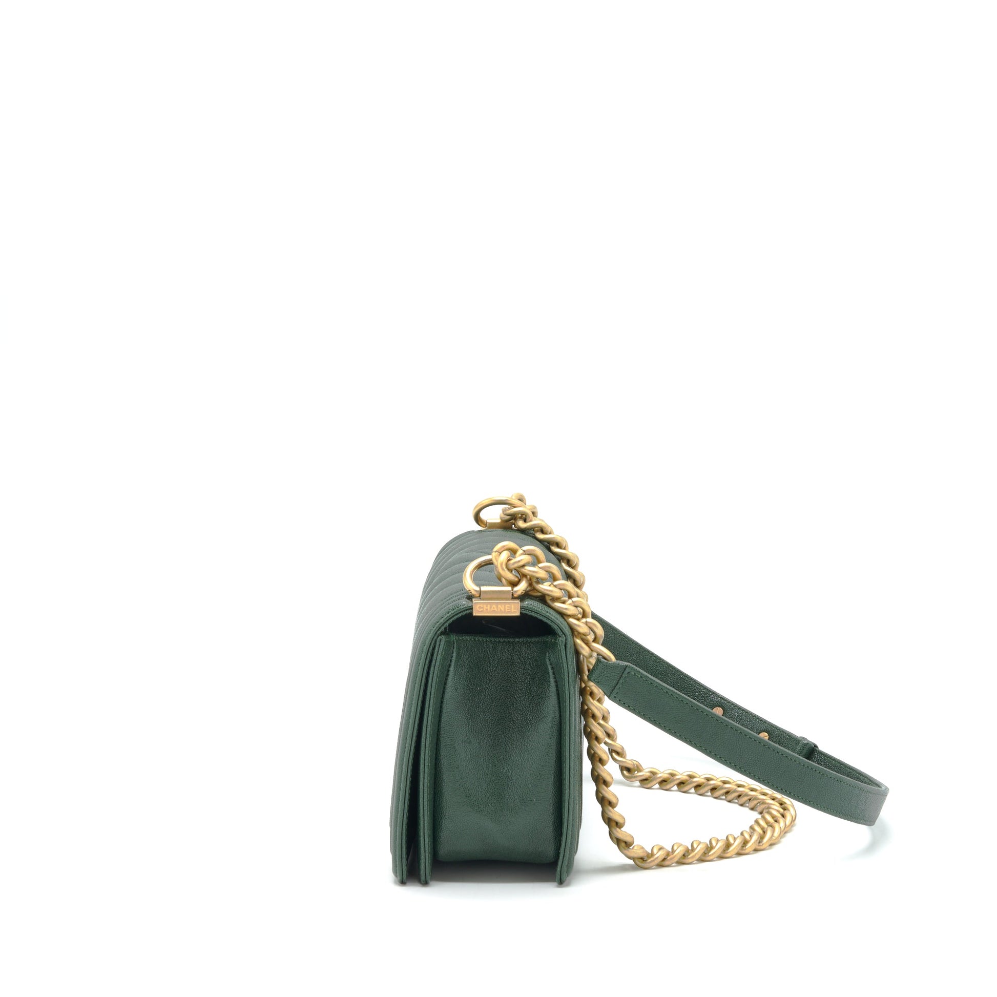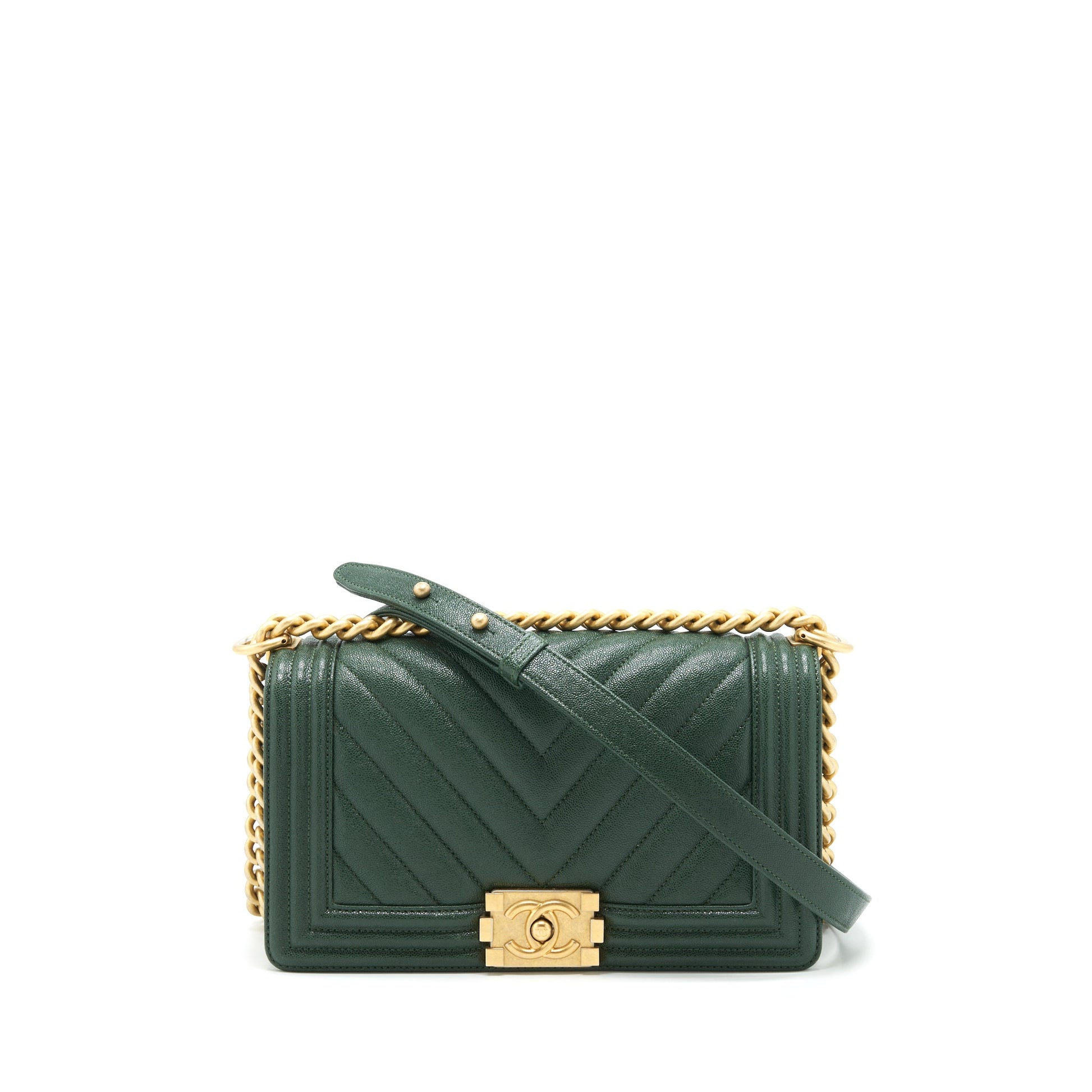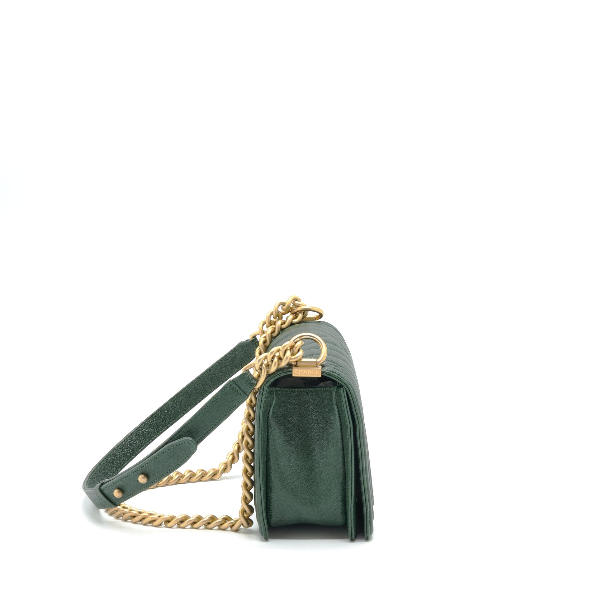 Chanel Chevron Medium Boy Bag Caviar Green Brushed GHW