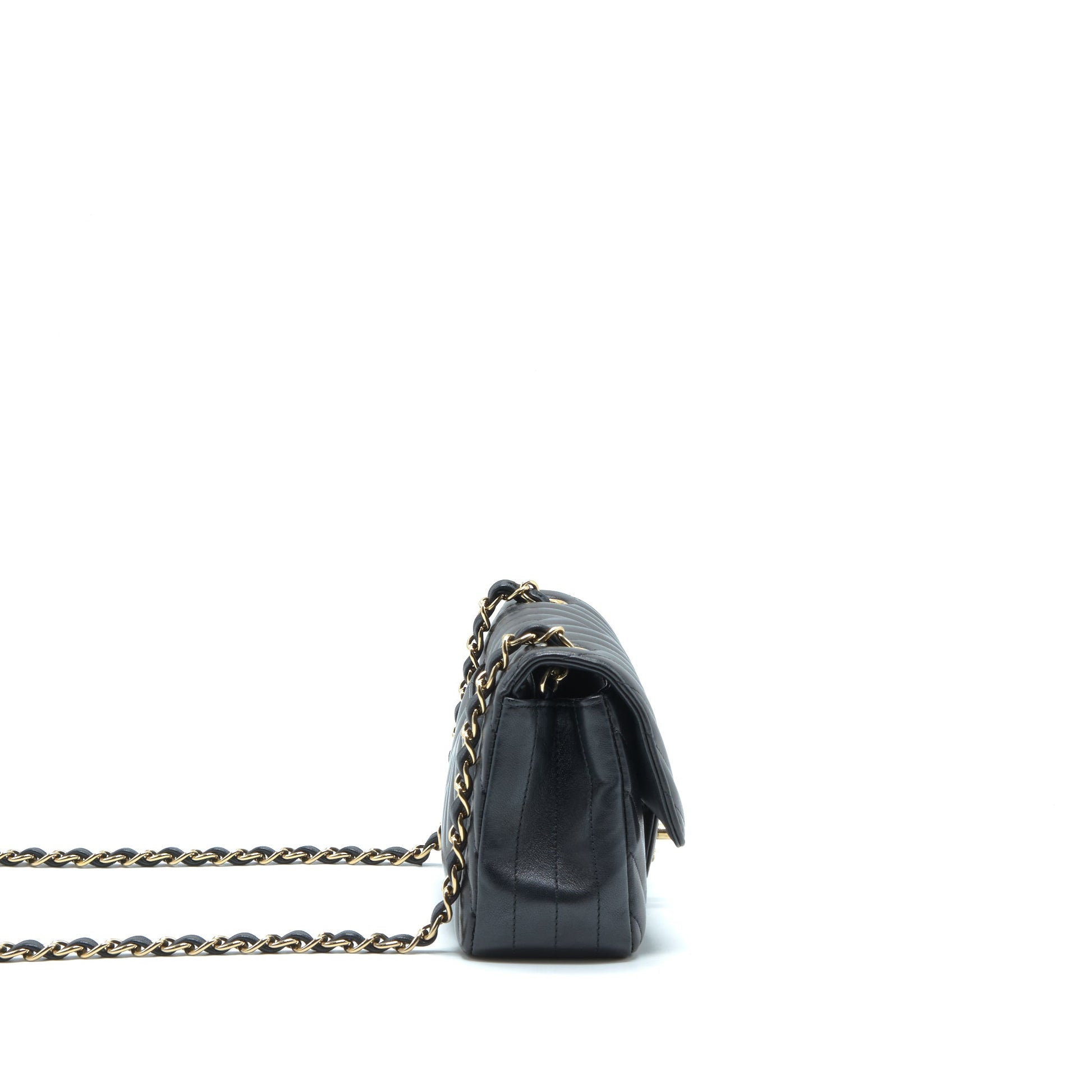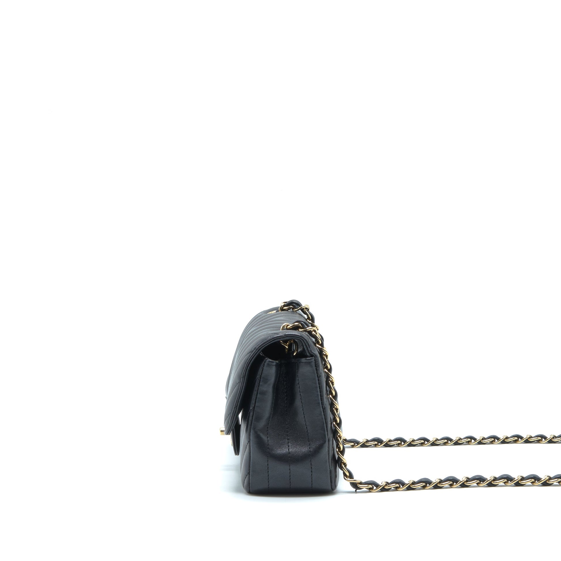Chanel Chevron Mini Rectangular Flap Bag Lambskin Black LGHW